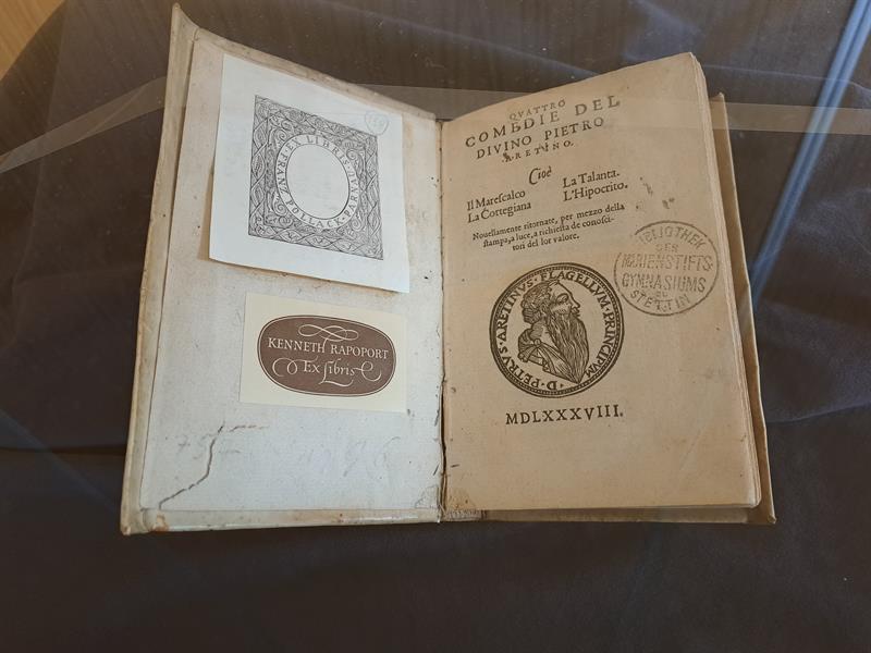Dzięki działaniom restytucyjnym Ministerstwa Kultury i Dziedzictwa Narodowego starodruk „Qvattro Comedie Del Divino Pietro Aretino" (1588) został odzyskany i przekazany w depozyt Książnicy Pomorskiej w Szczecinie. Starodruk po raz pierwszy został zaprezentowany w dniach 22-23 maja podczas konferencji naukowej „Dwie biblioteki - jedna historia", natomiast pierwsza ogólnodostępna prezentacja odbędzie się podczas wystawy jubileuszowej organizowanej z okazji 120-lecia Książnicy w październiku 2025 roku.