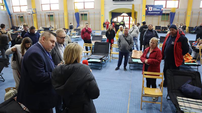 Jak informował na bieżąco starosta Piotr Pakuszto, tymczasowe zakwaterowanie przygotowano w hali sportowej miejscowego Liceum Ogólnokształcącego im. Bogusława X.