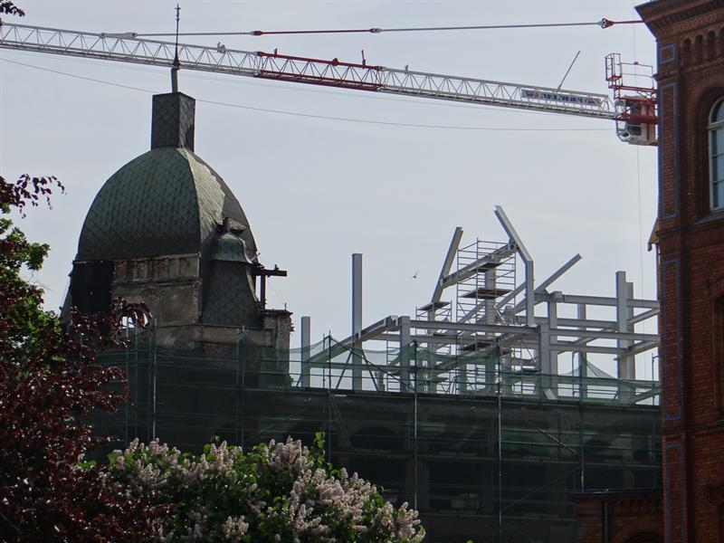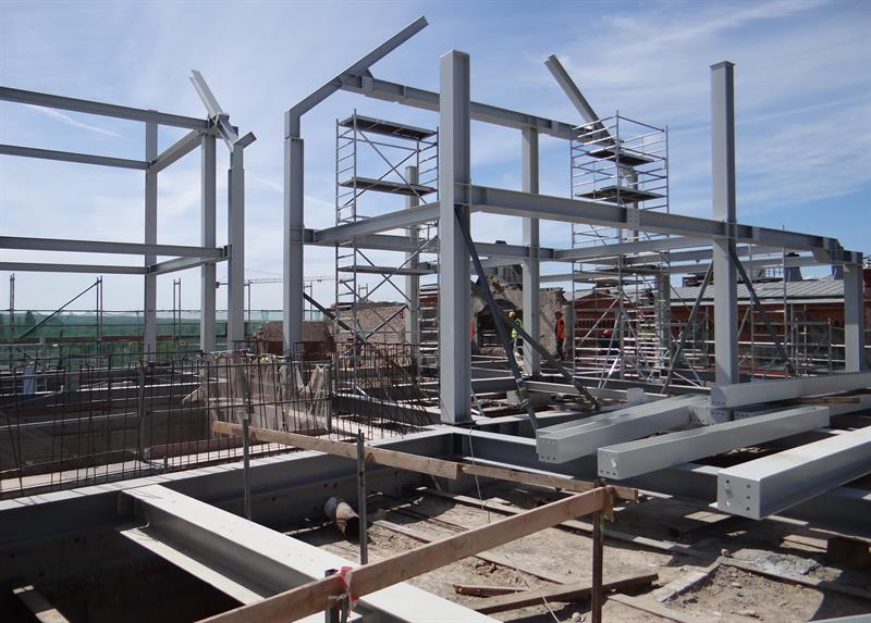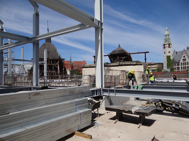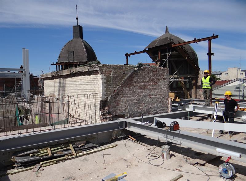 Po rozbiórce poprzedniego poszycia teraz prowadzone są prace przy wznoszeniu konstrukcji nowych dwóch kondygnacji. Stawiana jest konstrukcja zadaszenia, które będzie jednocześnie jedną wielką baterią słoneczną dostarczającą energii za sprawą paneli