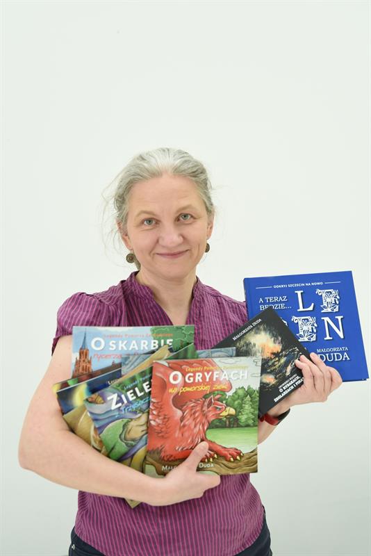 Małgorzata Duda to miłośniczka Szczecina, przewodniczka wycieczek i pisarka. Opowiadane przez nią historie zachwycają zarówno młodszych, jak i starszych i pozwalają odkrywać mniej lub bardziej znane zakątki Pomorza Zachodniego na nowo.