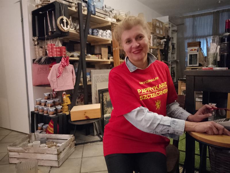 Kiedy odwiedziliśmy to miejsce, do „Made in Szczecin" weszła kilkuosobowa rodzina z Braunschweigu w Niemczech. Okazało się, że właścicielka sklepu porozumiewała się z nimi