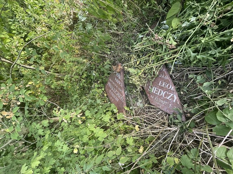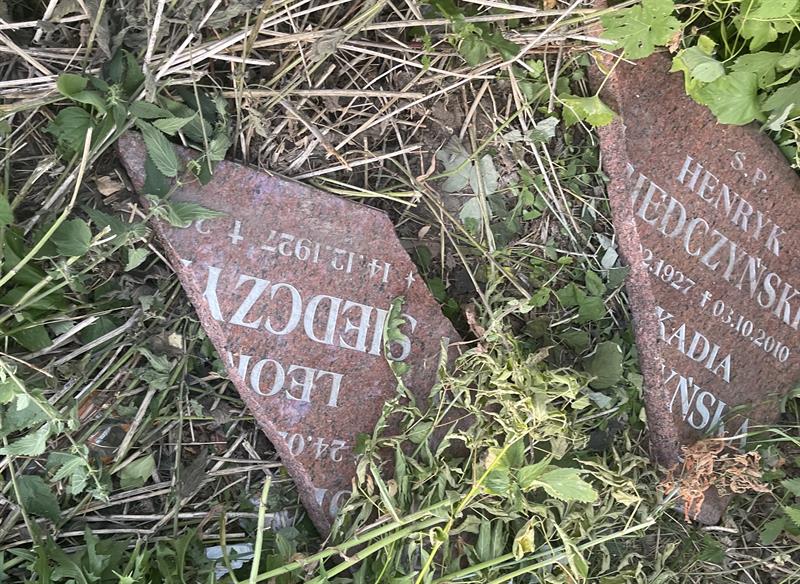- Choć płyta z czerwonego granitu jest rozbita, to wszystkie jej inskrypcje są czytelne - opowiada nasz Czytelnik. - Stąd wiem, że pochodzi z mogiły rodzinnej świętej pamięci Leokadii oraz Henryka Siedczyńskich. Zastanawiające, że nie jest