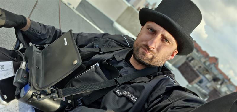 Ja spotkałem kominiarza odrobinę wcześniej, bo tuż po świętach Bożego Narodzenia. Szedł ulicą Parkową, gdzie jest sporo starych budynków wymagających nadzoru. Właściwie to wsiadał już do samochodu, którym przewozi całą masę niezbędnego do pracy sprzętu: - Niech pan poczeka - poprosiłem. - Jeśli pan odjedzie, to na pewno opuści mnie szczęście, a chyba nie chce mnie pan mieć na sumieniu? - przekonywałem.