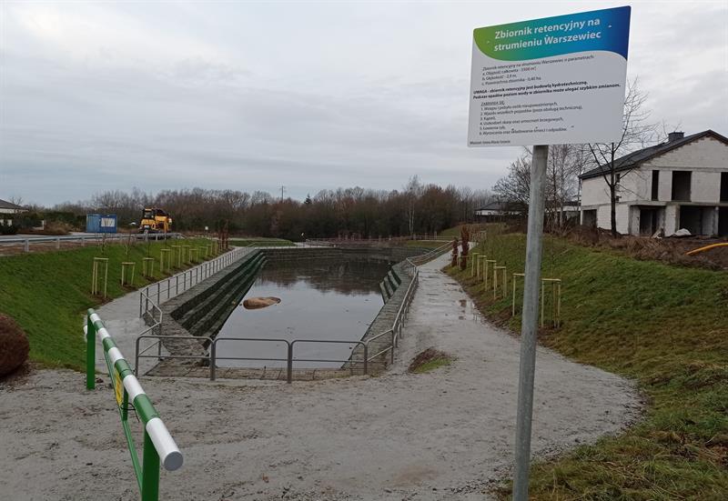 Niespełna trzy lata temu teren przyległy do skrzyżowania ulic Wapiennej, Północnej i odchodzącego od niego ślepego odcinka ul. Fińskiej w Szczecinie wyglądał jak jeden wielki pas ugorów. Wśród bujnych chaszczy i zarośli trudno było tam choćby dostrzec zarys brzegów przepływającego w tym miejscu strumienia Warszewiec. Teraz tuż obok urządzonego tam ronda w obniżeniu znajduje się duży zbiornik retencyjny o powierzchni 0,4 ha, głęboki na 2,9 m i o objętości całkowitej 5500 m sześc. Ma odbierać nadmiar wód opadowych i roztopowych z całej okolicy.