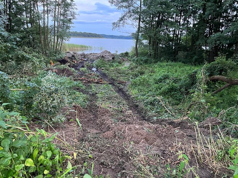 - Tam są cztery działki, bezpośrednio przy jeziorze - opowiada nam pan Dariusz. - Właściciele zamówili koparkę i na całej szerokości tych działek robią sobie dojazd do jeziora. Wycięli ok. 20 drzew; graby, wiązy, powycinali krzaki. A także na całej szerokości ok. 25 metrów wycięli trzcinę i wyciągnęli ją na brzeg. Teren przy jeziorze został totalnie zdegradowany. Takie rzeczy dzieją się na terenie Ińskiego Parku Krajobrazowego Natura 2000! Takie samowolki prowadzą do degradacji naszego