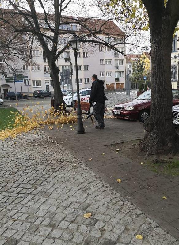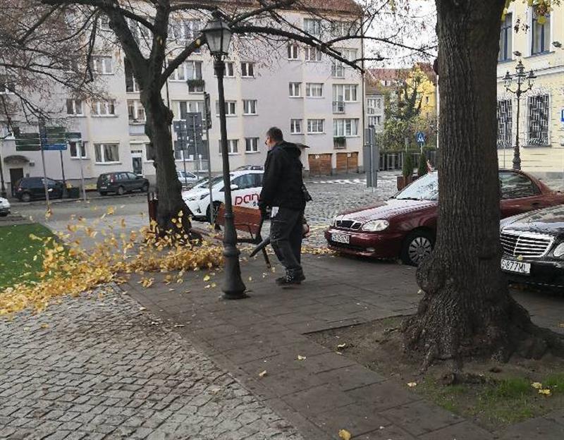 Pani Anna (dane do wiadomości redakcji) codziennie przechodzi przez ów plac Starego Miasta w drodze do pracy. Zdziwiła się, pewnego dnia, widząc, jak za pomocą dmuchawy mężczyzna usuwa z parkingu oraz przyległego chodnika liście opadłe z drzew. Wprost na nowo ułożoną murawę.