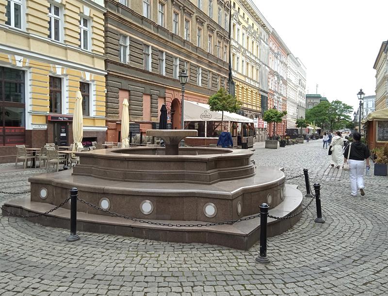 W miejscu po fontannie powstanie aranżacja, której głównym elementem będzie zieleń i kwiaty oraz przestrzeń do organizowania wydarzeń artystycznych – na tym będzie polegało nowe zagospodarowanie centralnej części deptaka Bogusława. Fot. archiwum UM Szczecin