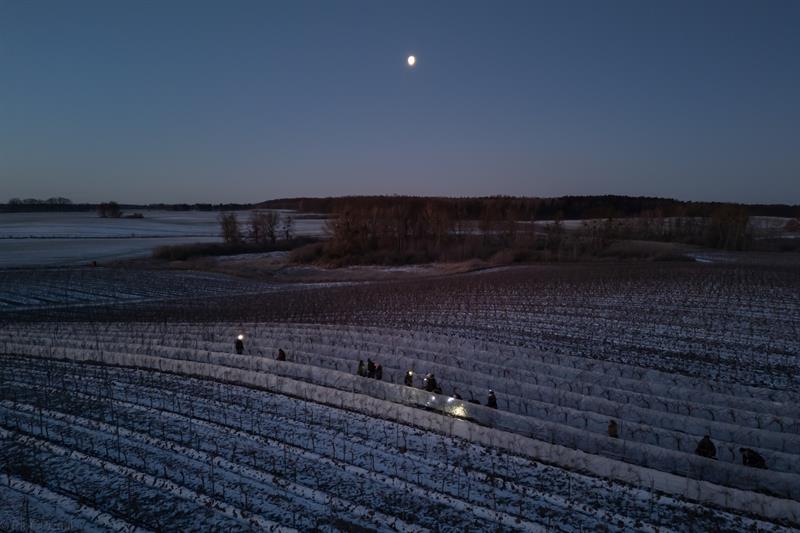 W poniedziałek 17 lutego o godz. 4 nad ranem w Baniewicach temperatura spadła do -10 stopni, co pozwoliło na rozpoczęcie przygotowań do zbiorów. Godzinę później przystąpiono do winobrania, a następnie