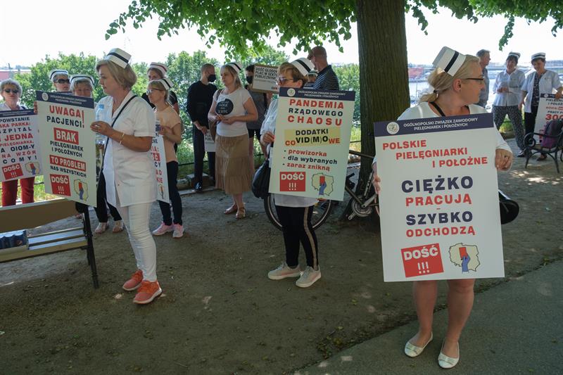 Zjednoczeni pracownicy ochrony zdrowia - m.in.: pielęgniarki, położne, lekarze, ratownicy, fizjoterapeuci, laboranci - w sobotę przeszli ulicami Warszawy, po czym w pobliżu Kancelarii Premiera rozłożyli „Białe miasteczko 2.0". W sobotnim marszu uczestniczyli także medycy z Zachodniopomorskiego. Główne postulaty protestujących dotyczą zmiany ustawy o sposobie ustalania najniższego wynagrodzenia, realnego wzrostu wyceny świadczeń medycznych, zatrudnienia dodatkowych pracowników obsługi administracyjnej i personelu pomocniczego, wprowadzenia norm zatrudnienia uzależnionych od liczby pacjentów.