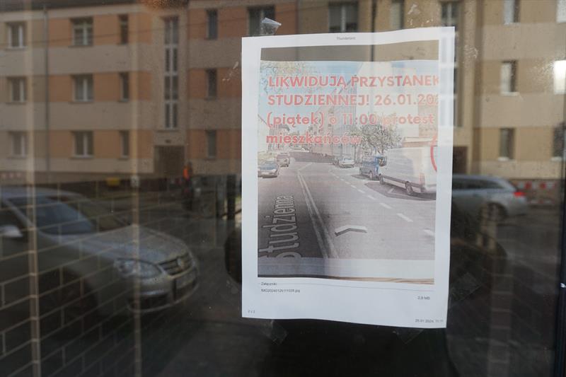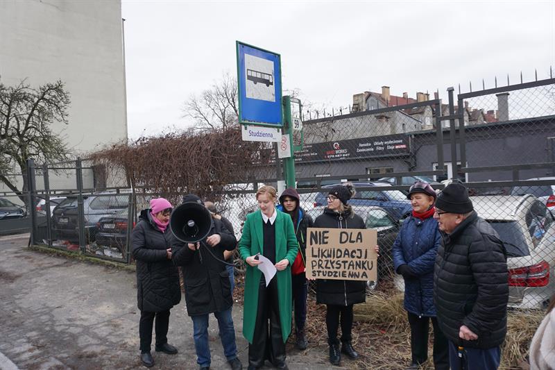 Protest miał związek z zapowiadaną przez ZDiTM likwidacją od 29 stycznia przystanku znajdującego się przy ul. Studziennej - miejscowi mówią na niego „przy mechaniku", bo ustanowiono go przy warsztacie naprawy samochodów.