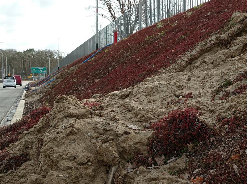 Dywan z sukulentów ułożony został na powierzchni 525 mkw., a prace - w ramach kontraktu zawartego z Eurovią Polska SA - wykonali pracownicy spółki podwykonawczej Green