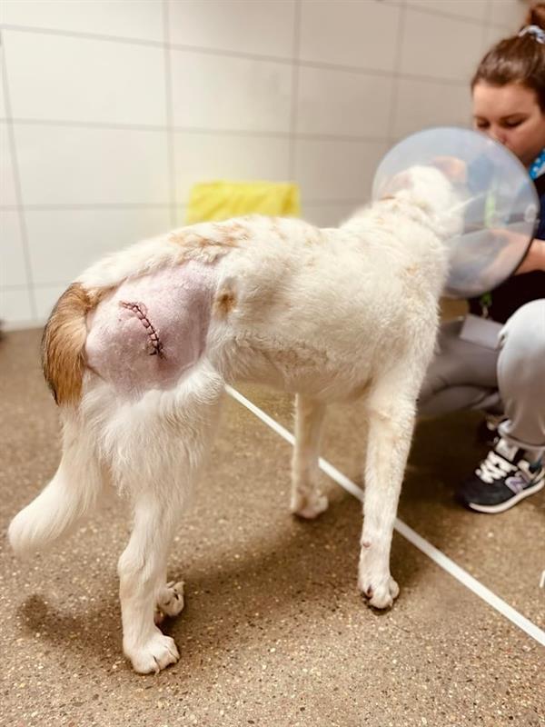 Biszkoptowy Amor (475/23) miał niespełna rok, gdy pod koniec listopada ub. roku został znaleziony przy ul. Potulickiej. Wkrótce się okazało, dlaczego poprzedni właściciel go porzucił niczym niepotrzebną rzecz. U psiaka wykryto wrodzoną wadę genetyczną - dysplazję dużego stopnia, przez którą w nieodległej przyszłości przestałby chodzić. Przed kalectwem mogły go uratować operacje, polegające na dekapitacji głowy kości udowej obu kończyn. Kosztowne, a po nich długotrwała i równie