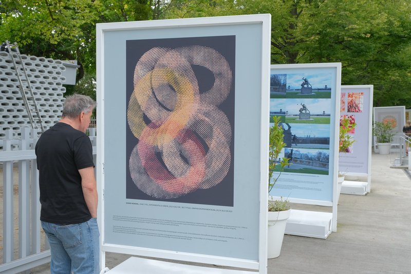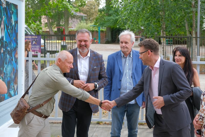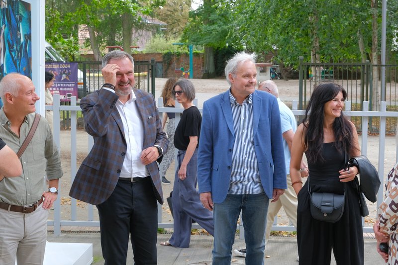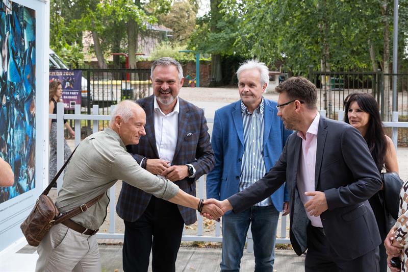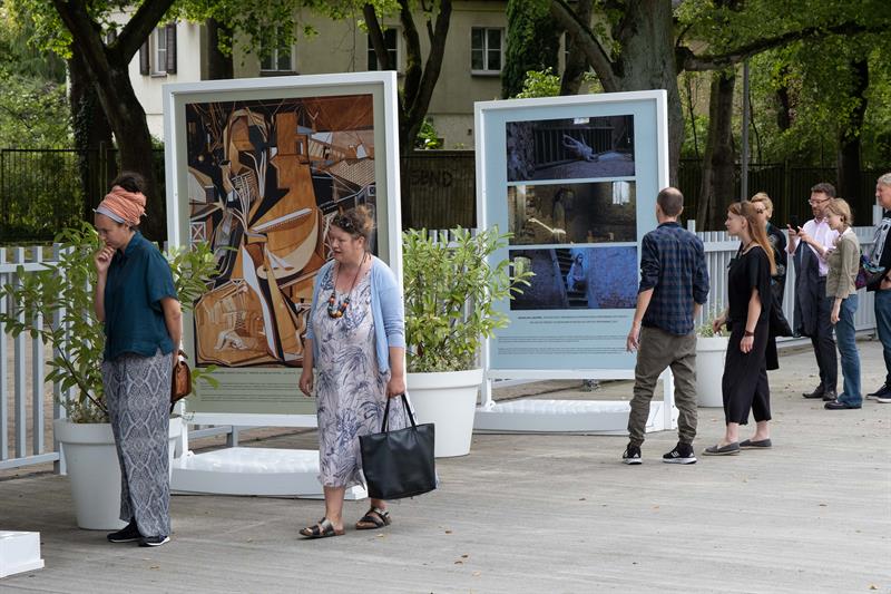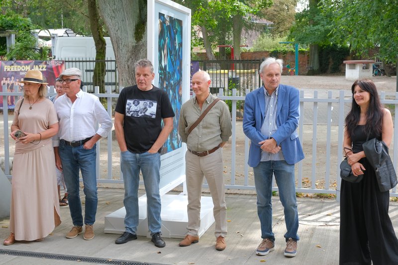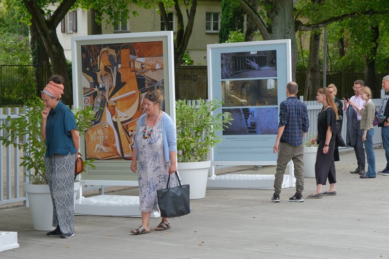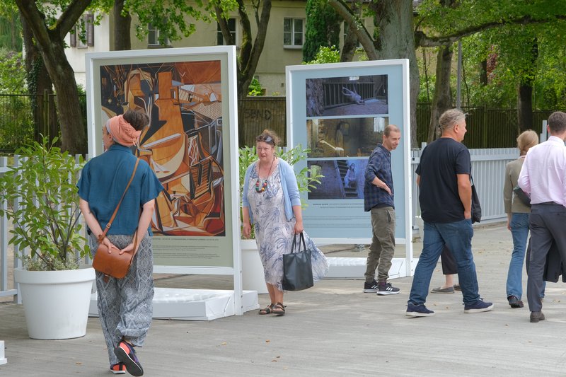 Artyści ze Szczecina oraz Greifswaldu na tarasie Teatru Letniego im. Heleny Majdaniec zaprezentowali swoje malarskie dzieła, które stworzyli podczas międzynarodowego pleneru.