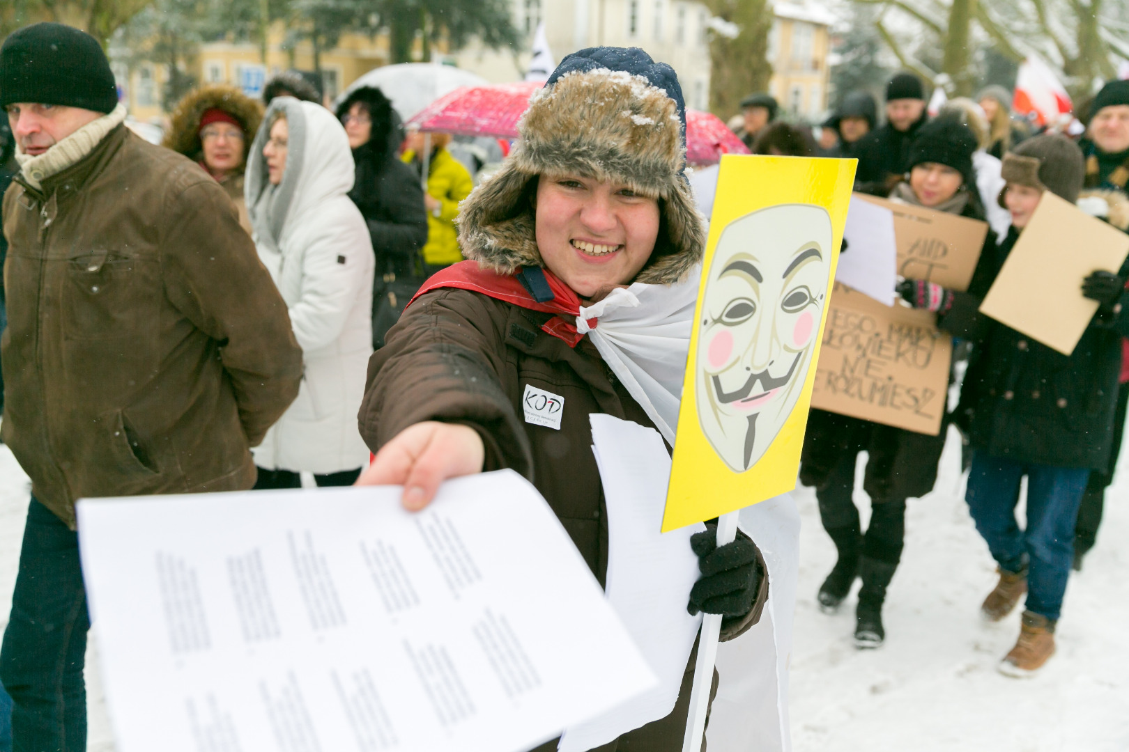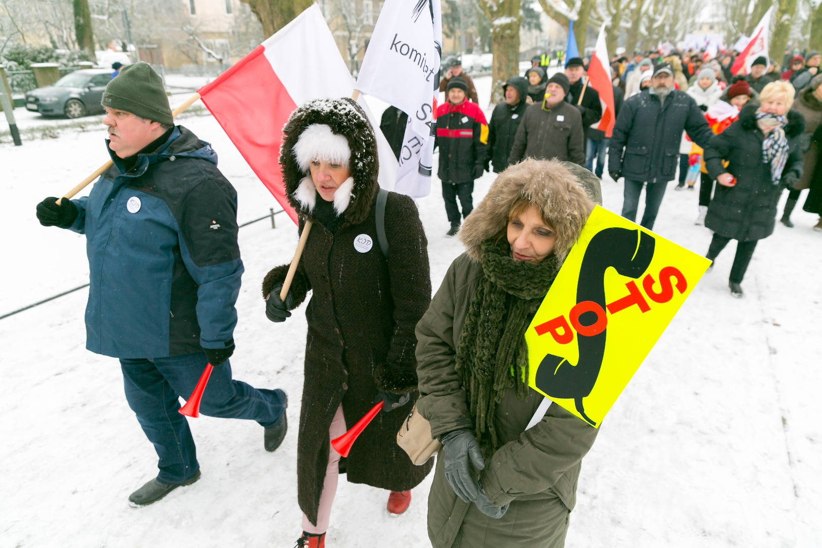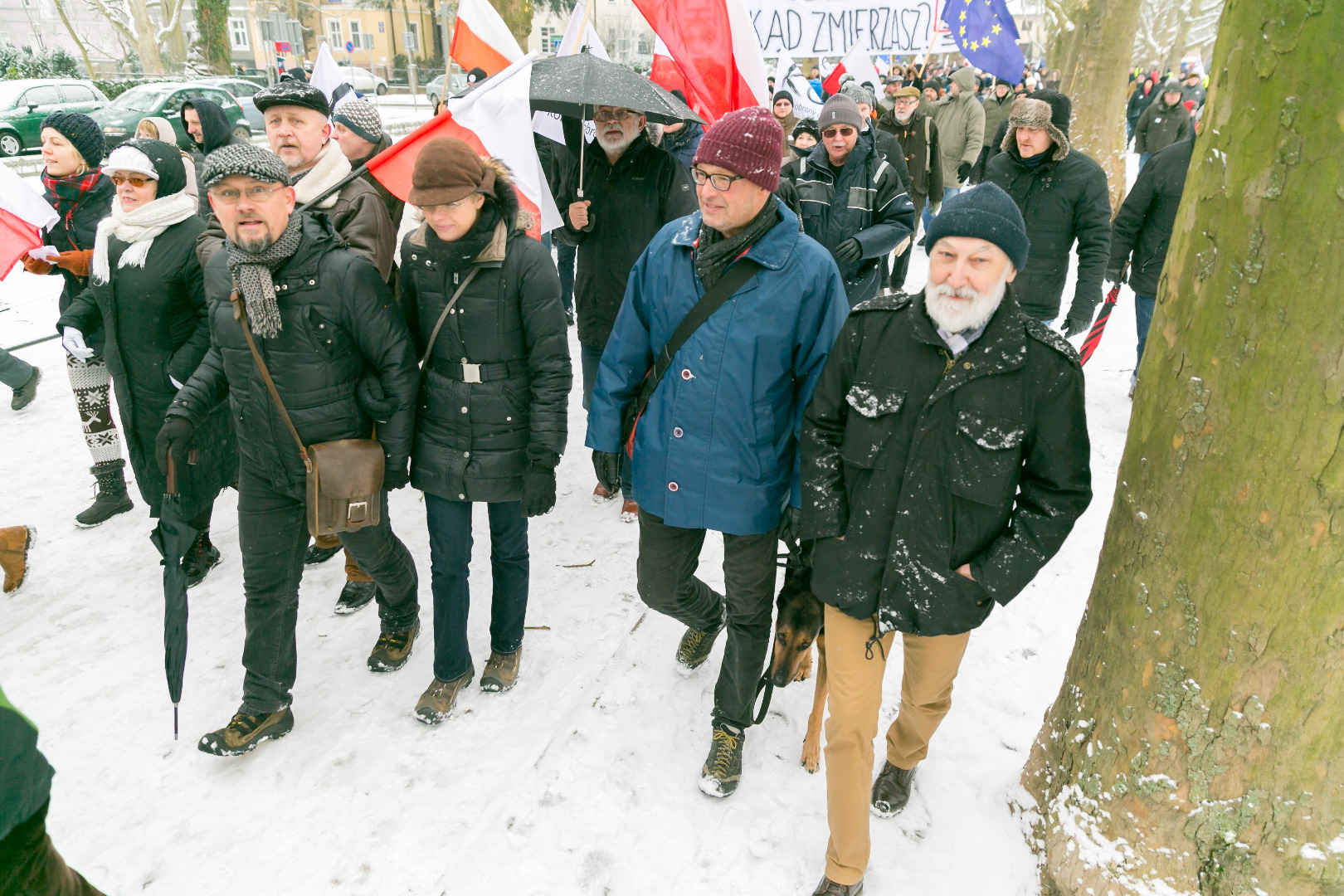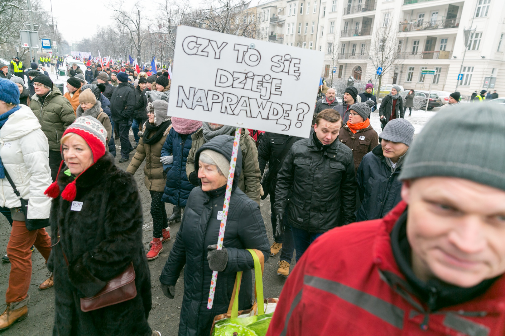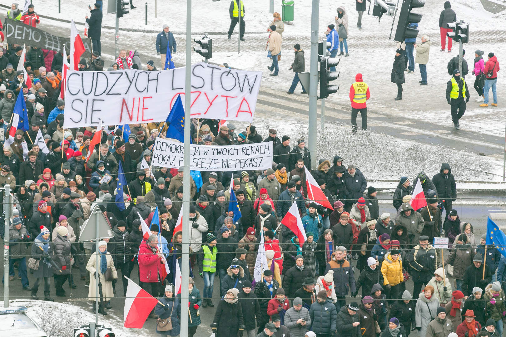 „Demokracja w Twoich rękach, pokaż Polsce, że nie pękasz", „Nie ma wolności bez prywatności" - takie m.in. hasła pojawiły się na transparentach podczas manifestacji zorganizowanej przez szczeciński Komitet Obrony Demokracji w sobotę (23 stycznia)