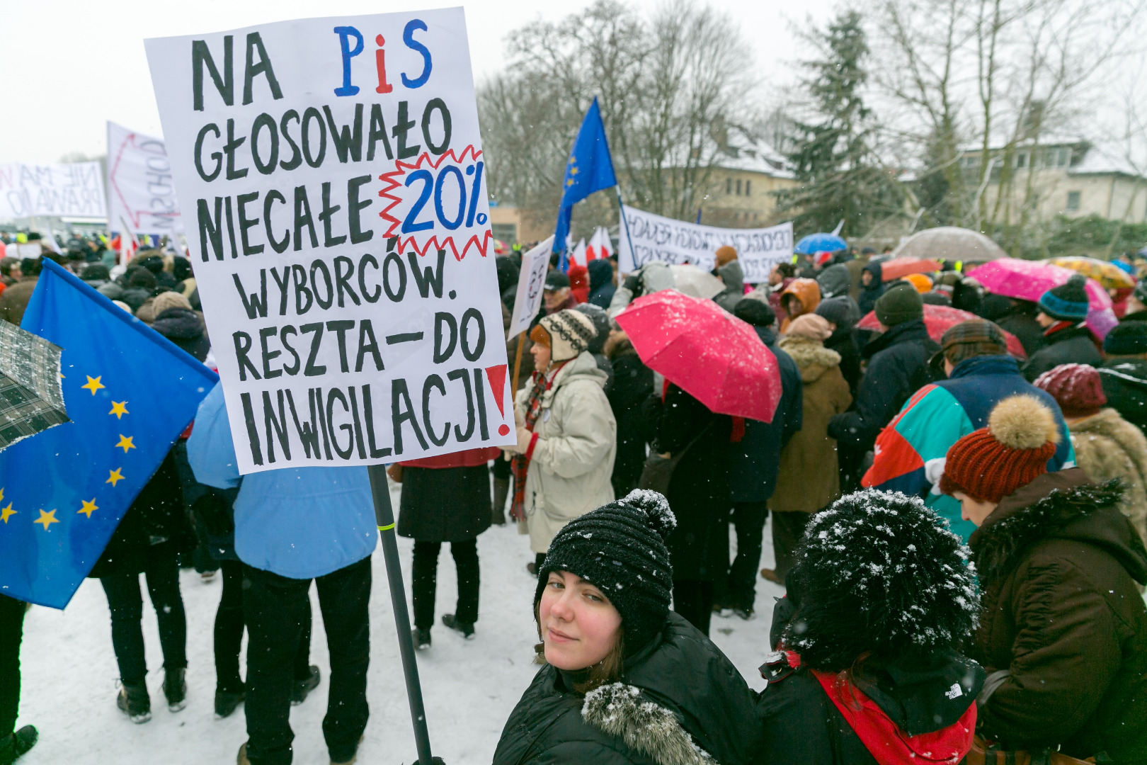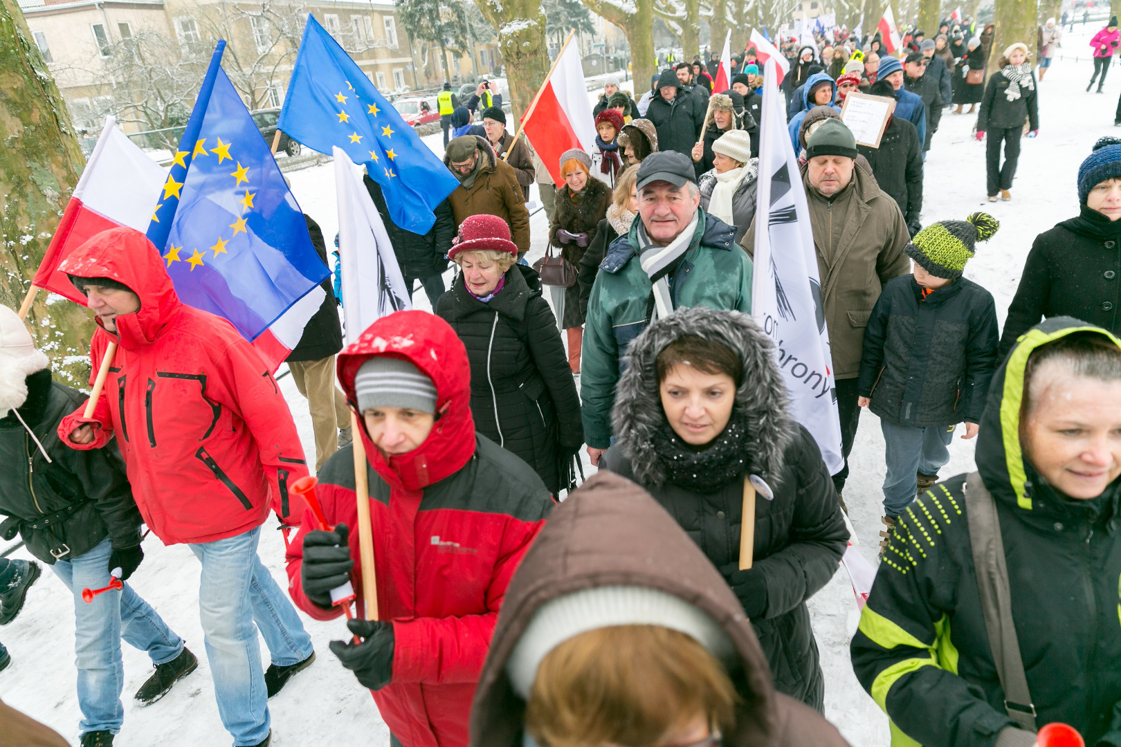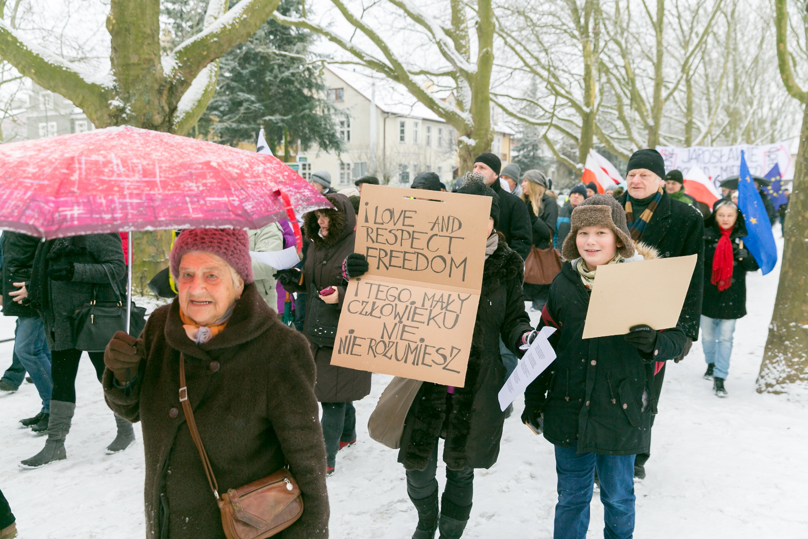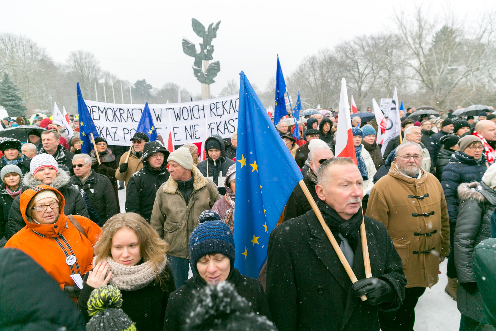 „Demokracja w Twoich rękach, pokaż Polsce, że nie pękasz", „Nie ma wolności bez prywatności" - takie m.in. hasła pojawiły się na transparentach podczas manifestacji zorganizowanej przez szczeciński Komitet Obrony Demokracji w sobotę (23 stycznia)
