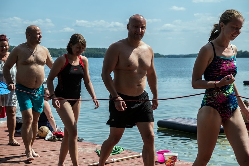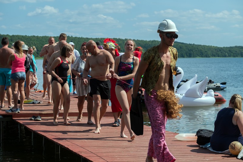 Nad jeziorem Siecino chrzest na płetwonurka P1 miało ośmioro uczestników kursu w Szczecińskim Klubie Płetwonurków "Bobry". W ten sposób zakończyli ponad 10 - miesięczne szkolenie, na którym zdobywali pierwszy stopień płetwonurkowy. Fot. Dariusz Gorajski