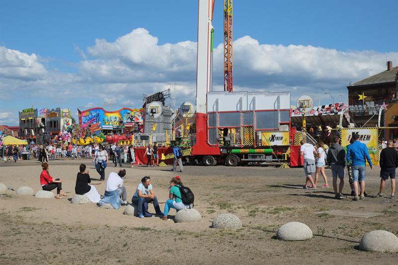 W sobotnie popołudnie na Wałach Chrobrego, nadodrzańskich bulwarach i Łasztowni tłumy. Drugi dzień Dni Morza stoi pod znakiem pięknej pogody i dobrej zabawy. Każdy może znaleźć coś dla siebie - karuzele, strzelnice, baloniki na druciku, Dom Strachu w wesołym miasteczku, wielki tir oferujący chrupiące frytki, bajgle, malowanie twarzy itp. atrakcje.