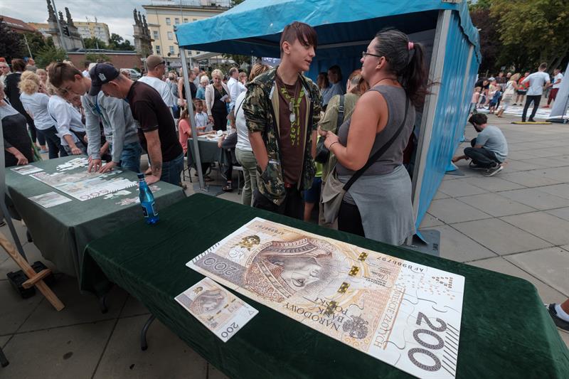 Z okazji 100-lecia odzyskania przez Polskę niepodległości na placu Solidarności w środę czekało wiele atrakcji przygotowanych przez Narodowy Bank Polski. Był m.in. punkt zamiany monet pięciozłotowych z okolicznościowym napisem. Kolejka do tego stoiska ustawiła się na godzinę przed otwarciem. Można też było wziąć udział w przestrzennej grze planszowej „Droga do wolności”.