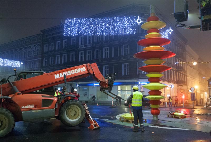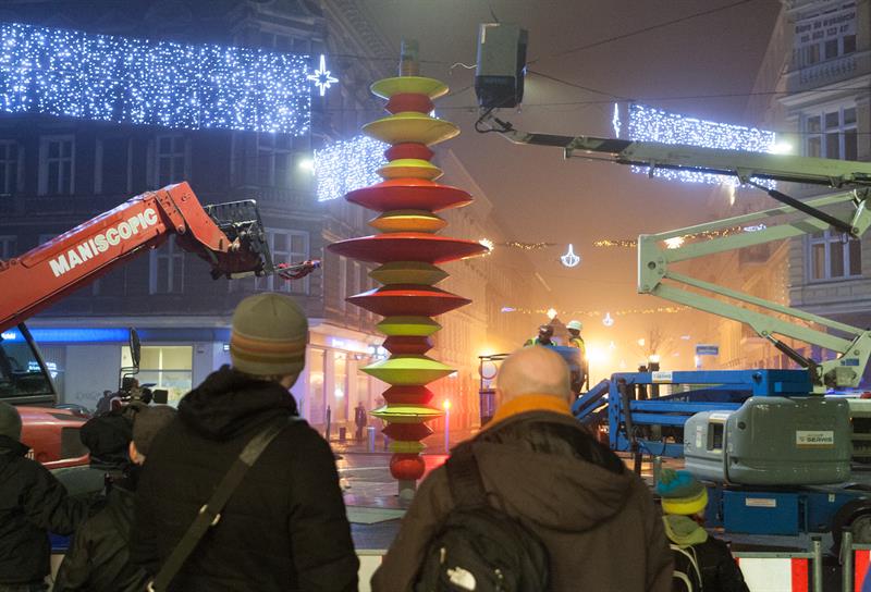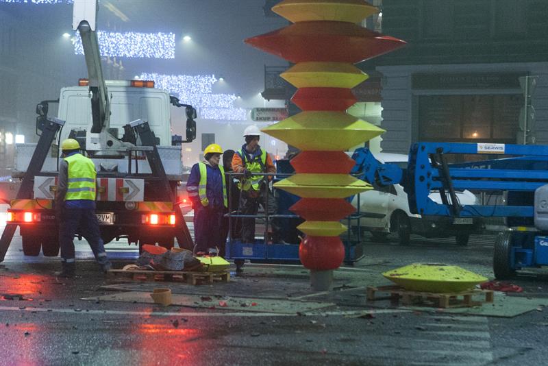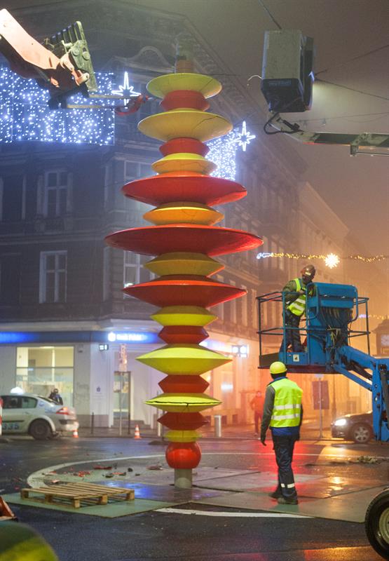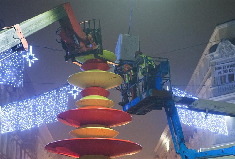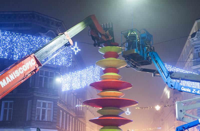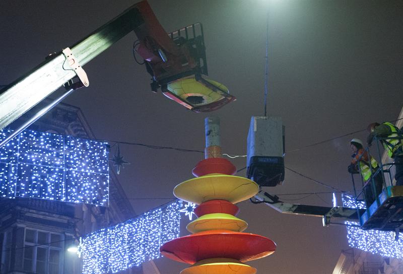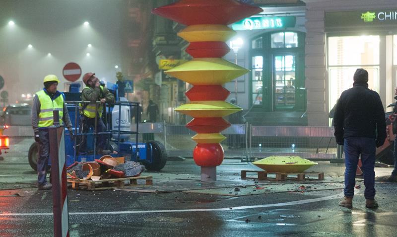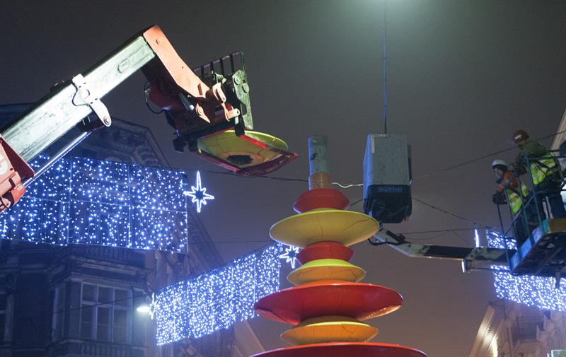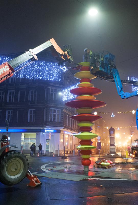 Trwa akcja demontażu Frygi. Prace prowadzone są przy użyciu trzech wysięgników. Poszczególne elementy są rozłączane za pomocą palnika. Cześć z nich trafiła już do kontenera na gruz.