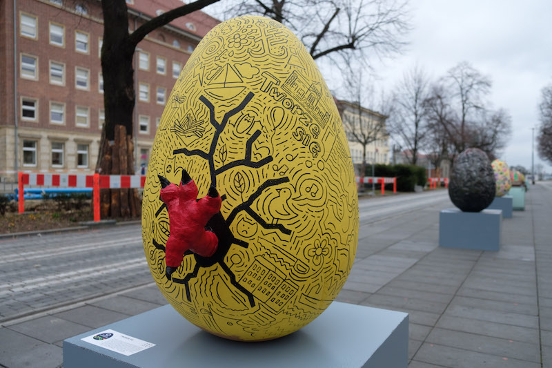 Jarmark Wielkanocny odbywa się w tym roku tylko online, ale przygotowane przez szczecińskie organizacje wielkie pisanki stanęły w Alei Kwiatowej w Szczecinie. Ich twórcy to: NKU Szczeciński Inkubator Kultury, Stowarzyszenie Jadwiga2, Galeria TWORZĘ SIĘ!, Stacja Akademia Rozwoju, Pałac Młodzieży w Szczecinie, Zespół Pieśni i Tańca Ziemi Szczecińskiej „Krąg”, Liga Superbohaterów, Dom Kultury „Krzemień”, Dom kultury „Klub Skolwin”, Szkoła sztuk użytkowych „Ars Atelier”, Klub Delta - filia Miejskiego Ośrodka Kultury i Fundacja Kamienica1.
