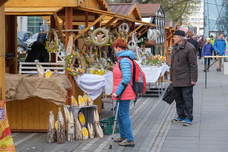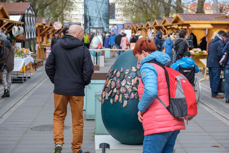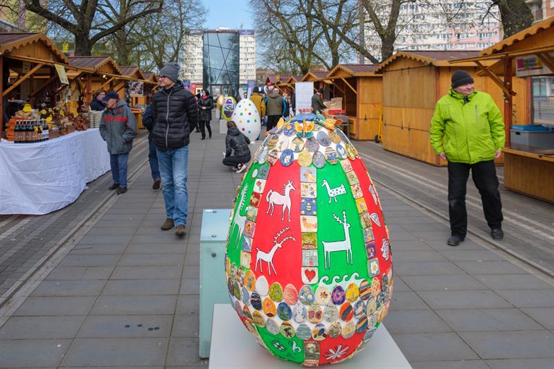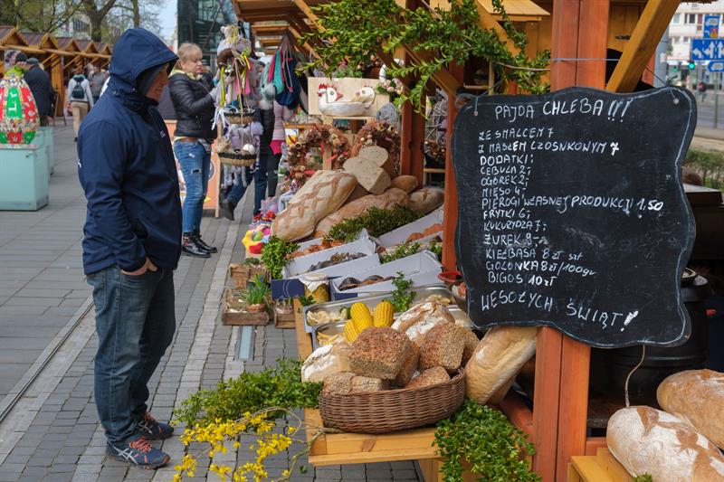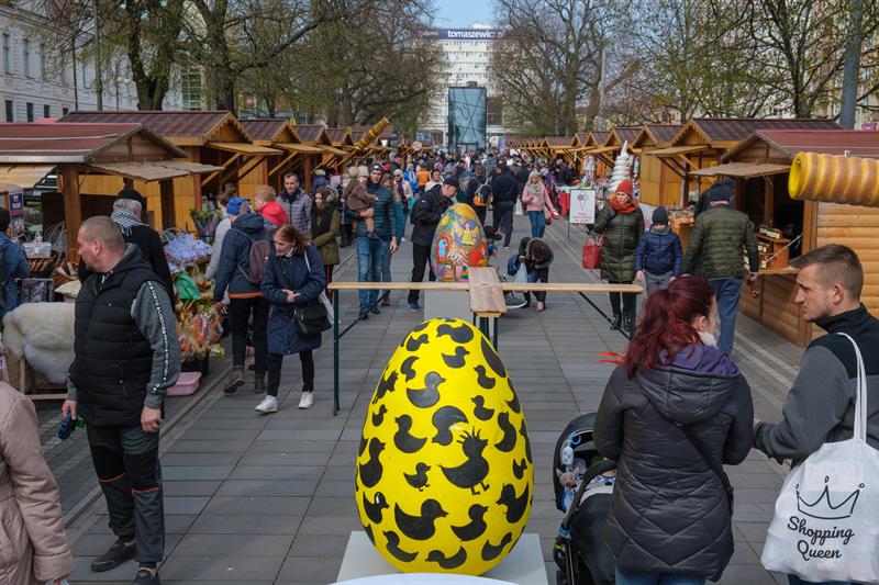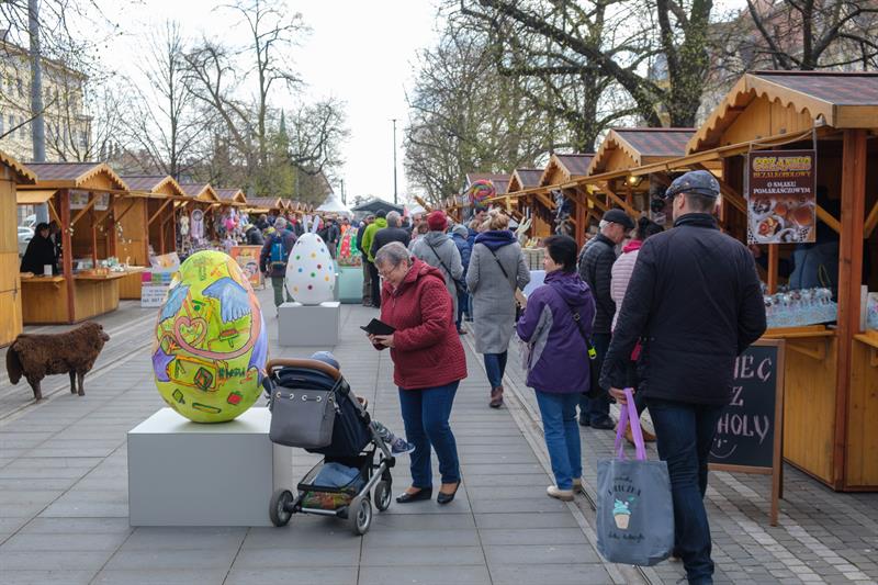 Smakowite mazurki, gigantyczne pisanki, chleby na zakwasie, a w kompozycjach z wiosennych kwiatów zajączki i kurczaczki - to wszystko i jeszcze więcej na Szczecińskim Jarmarku Wielkanocnym, który w sobotę (13 kwietnia) otworzył się na szczecinian i turystów w dawnej alei kwiatowej, czyli na pl. Żołnierza Polskiego.