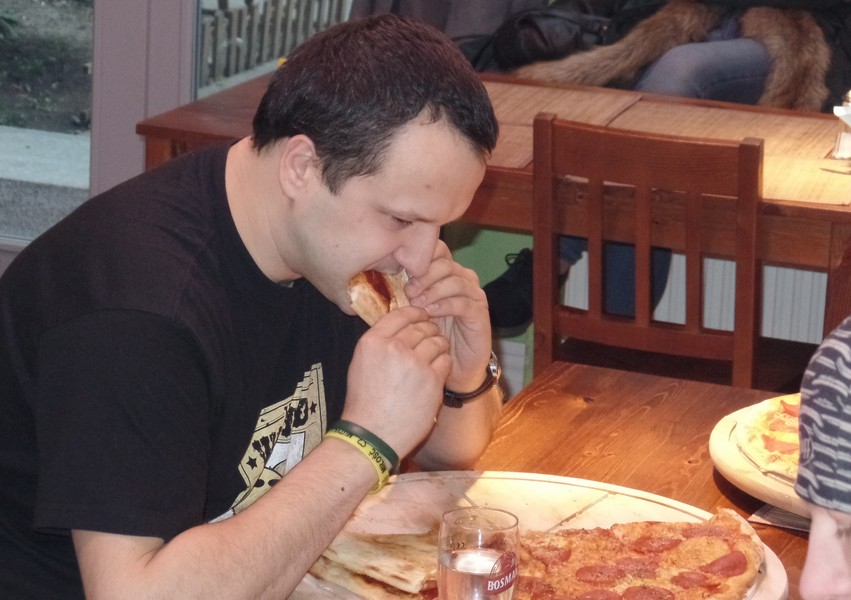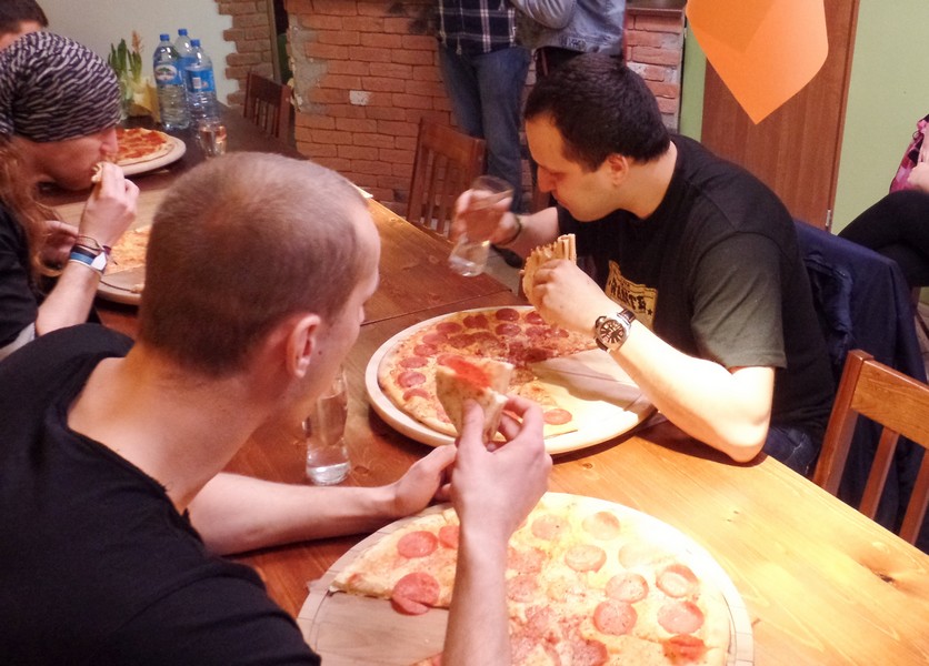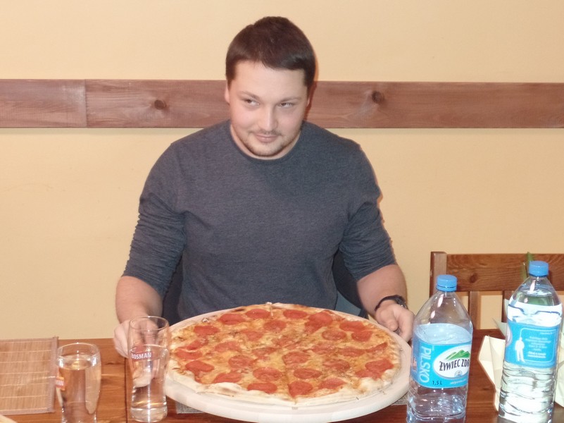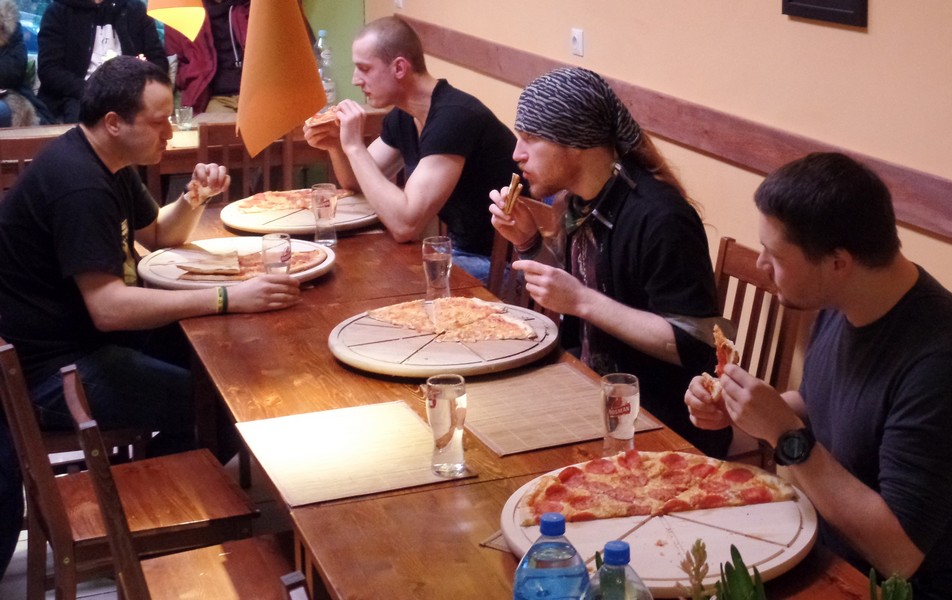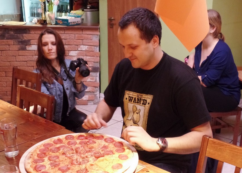 Z okazji wtorkowego Międzynarodowego Dnia Pizzy czterech śmiałków podjęło się jak najszybszego pochłonięcia pizzy o średnicy - uwaga, uwaga! - 45 centymetrów. Wygrał Roman Franciszek Heimrot, drugie miejsce zajął Bartłomiej Szklarz.