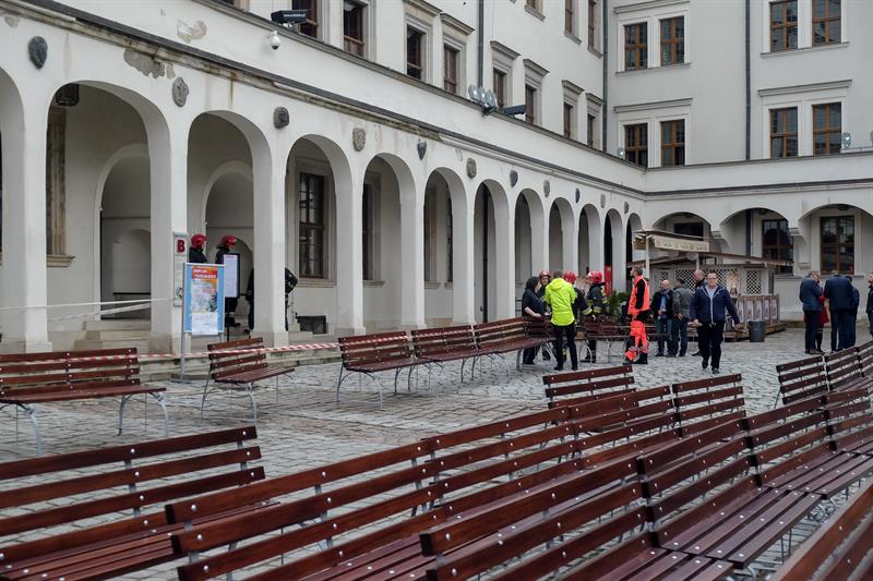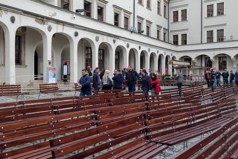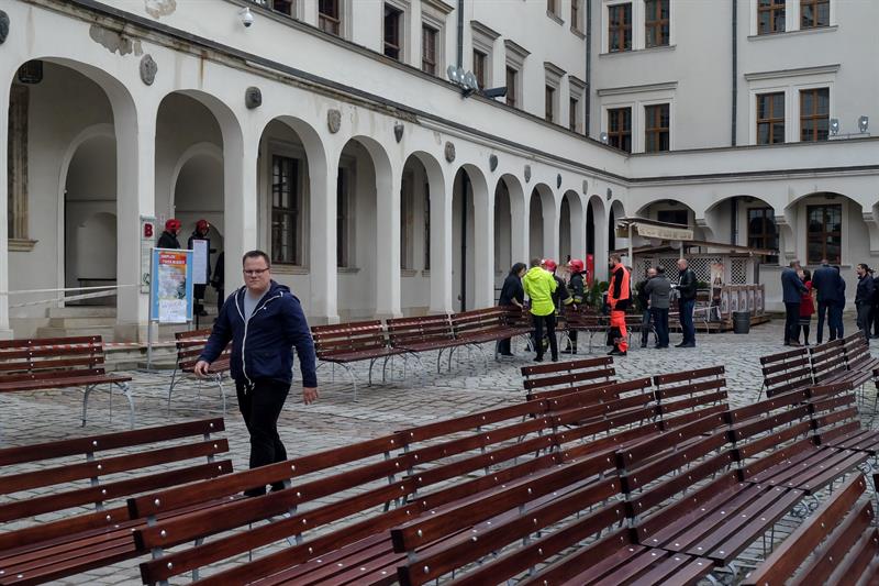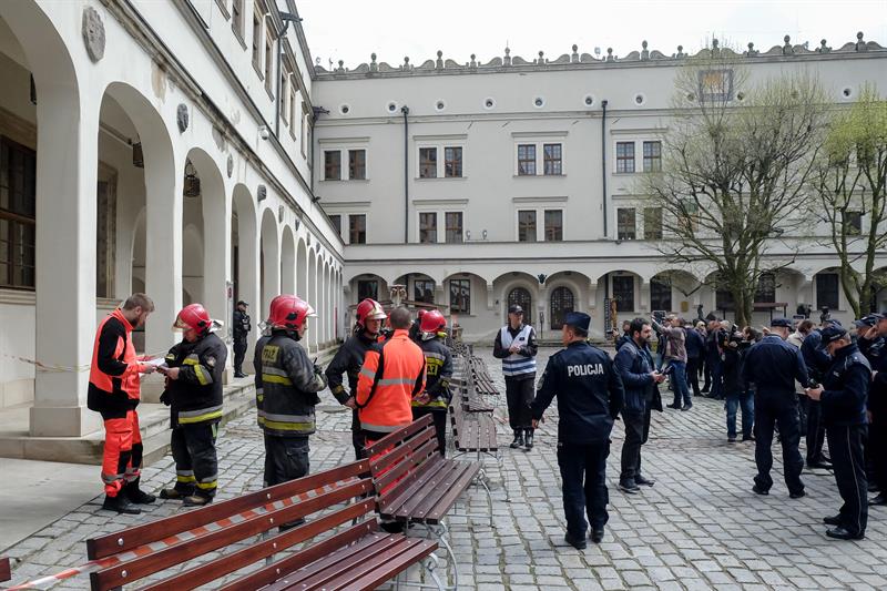 W czwartek, tuż po południu, w północnym skrzydle budynku, na skutek tąpnięcia kolumny, zawaliły się trzy kondygnacje. Nikt nie zginął.