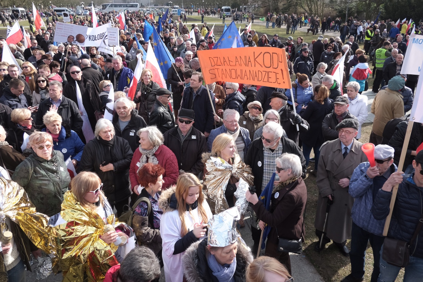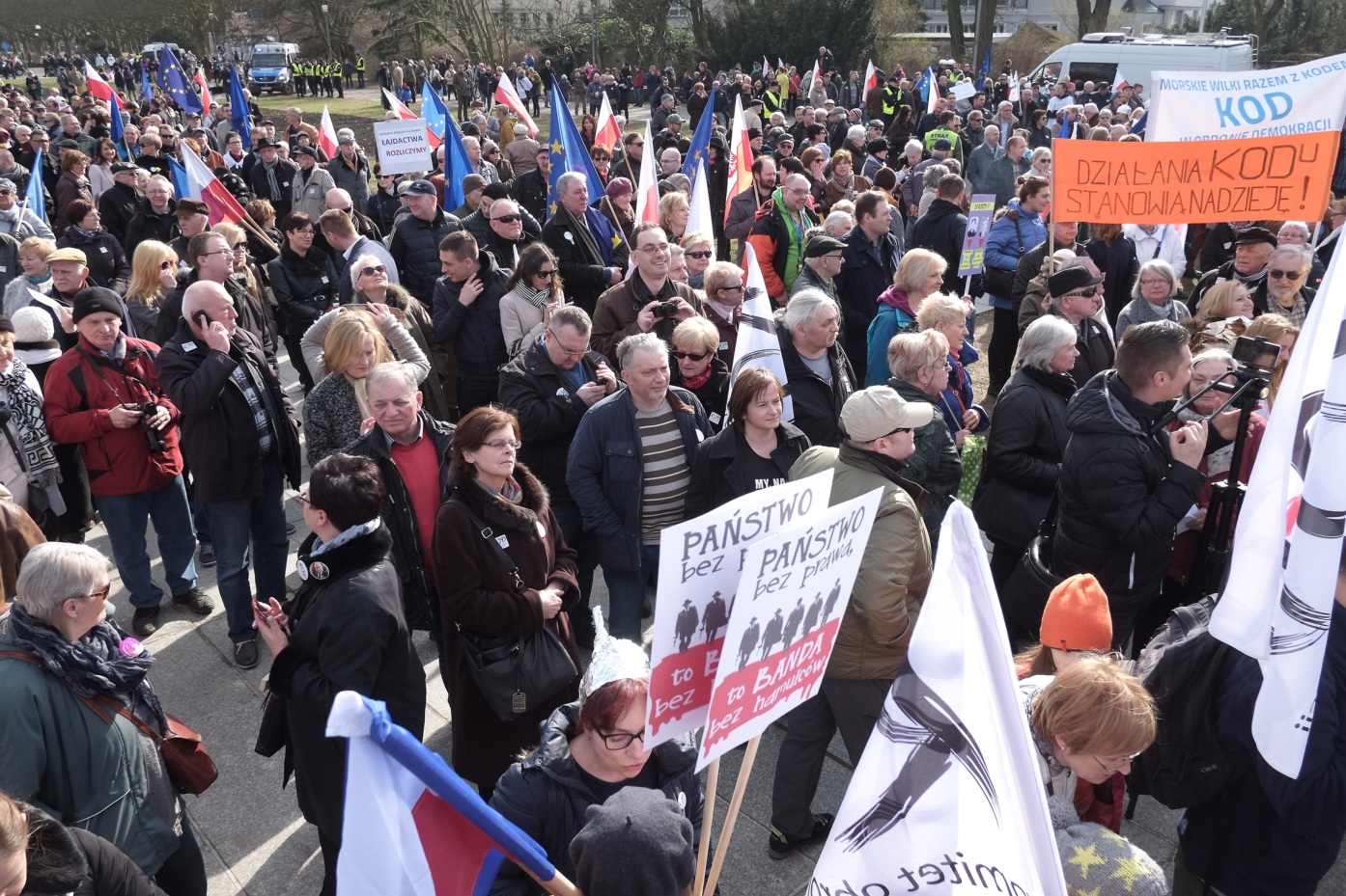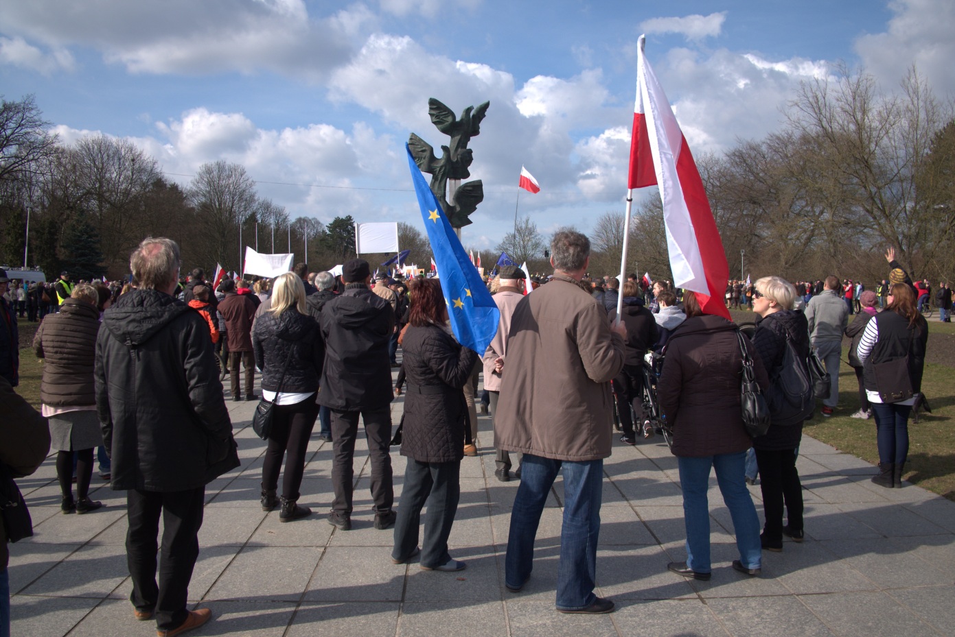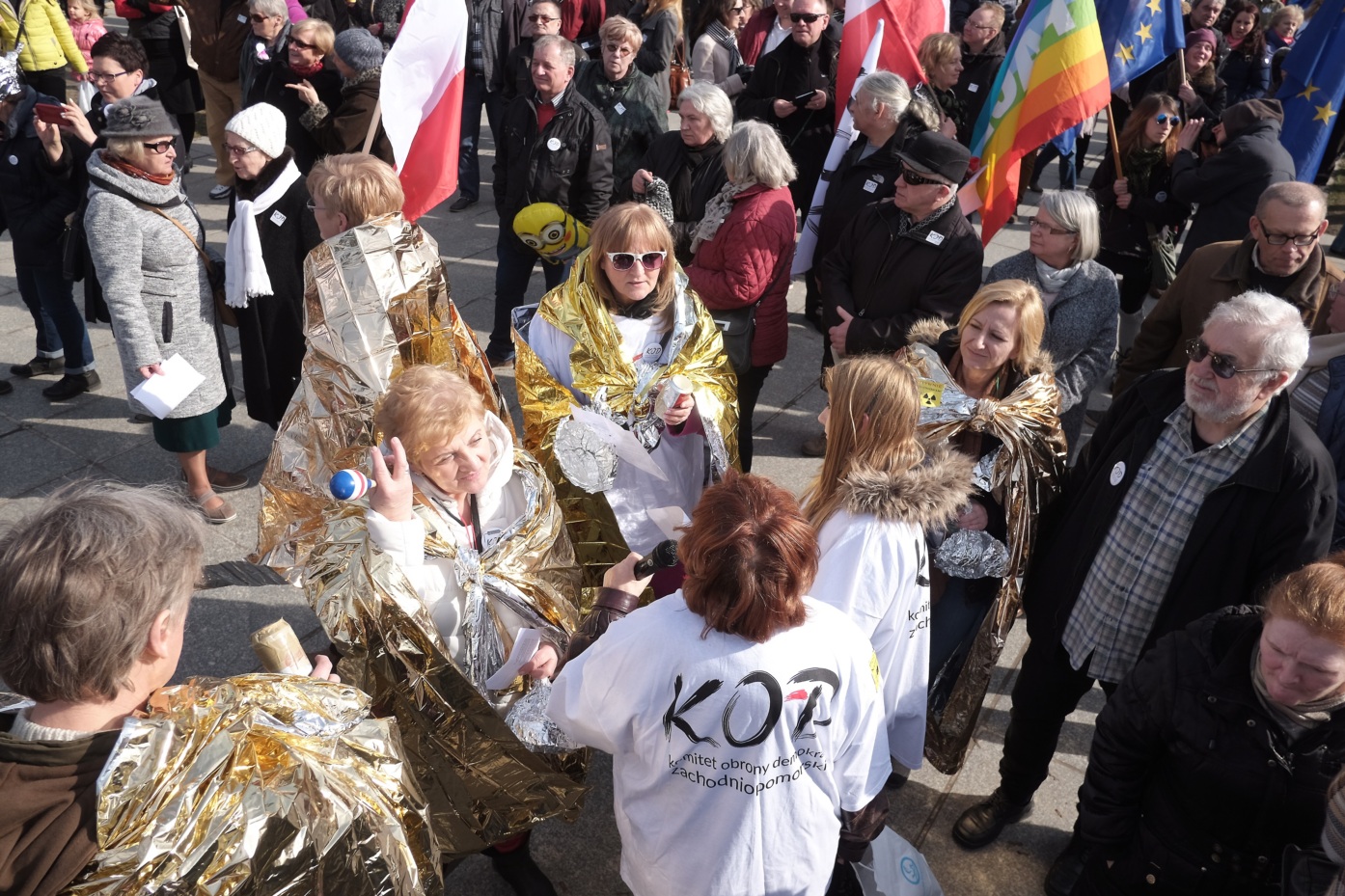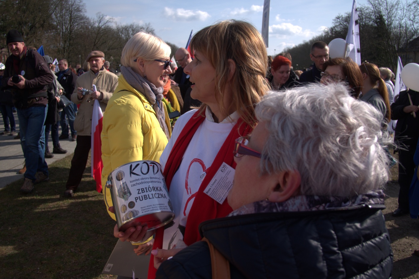 Sobotnia manifestacja Komitetu Obrony Demokracji pod Pomnikiem Czynu Polaków w Szczecinie.