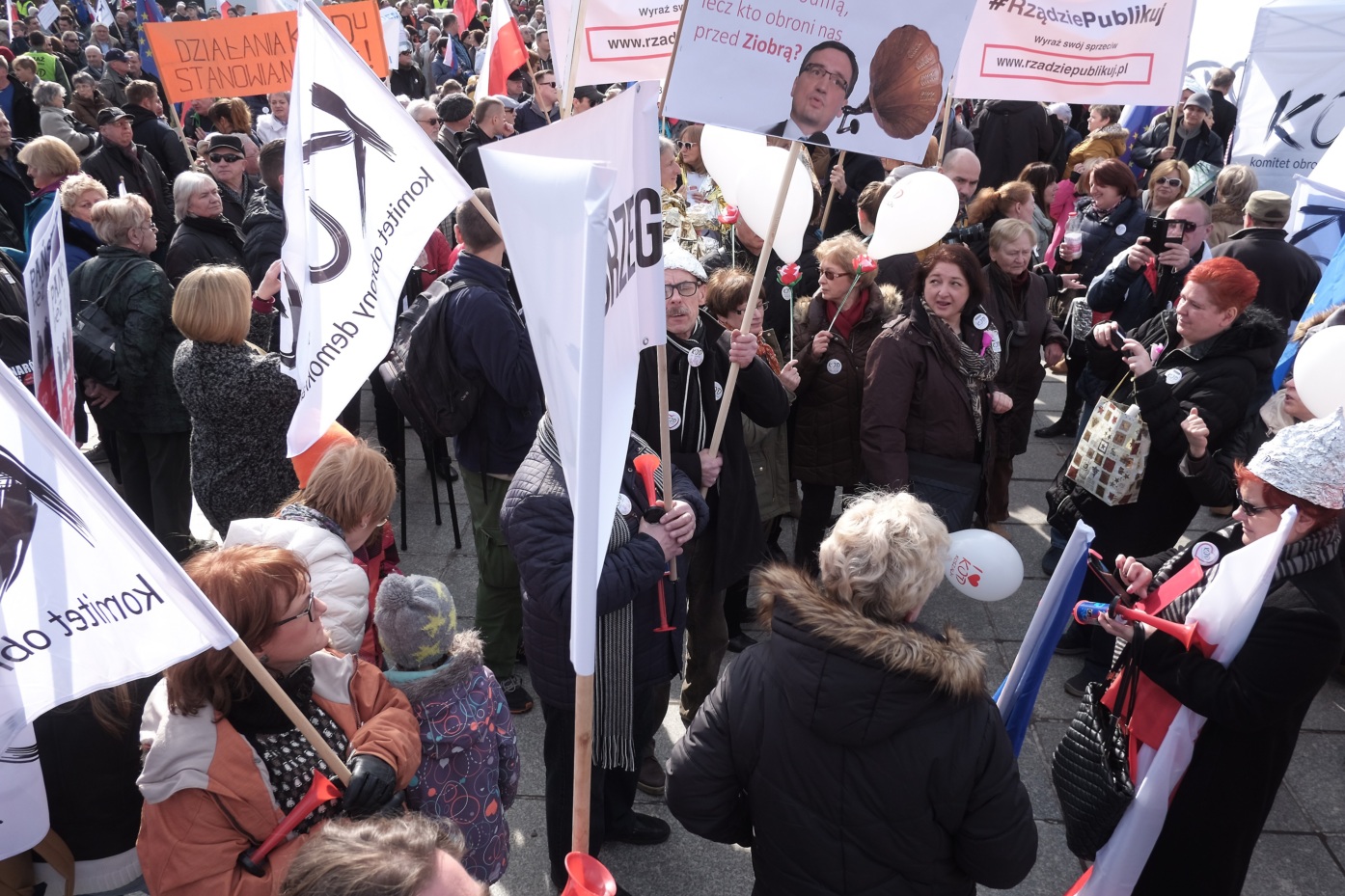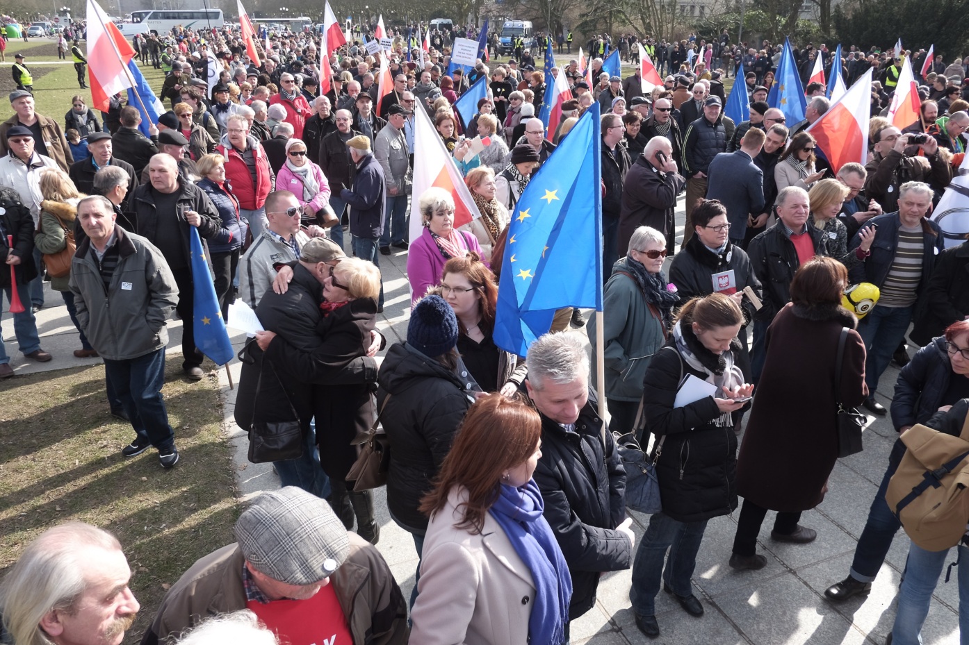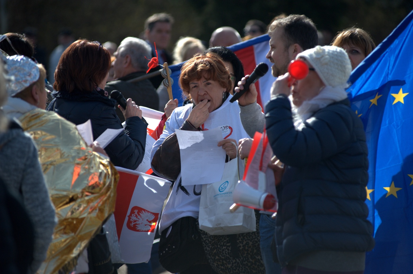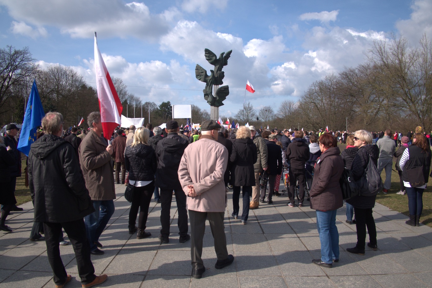 Sobotnia manifestacja Komitetu Obrony Demokracji pod Pomnikiem Czynu Polaków w Szczecinie.