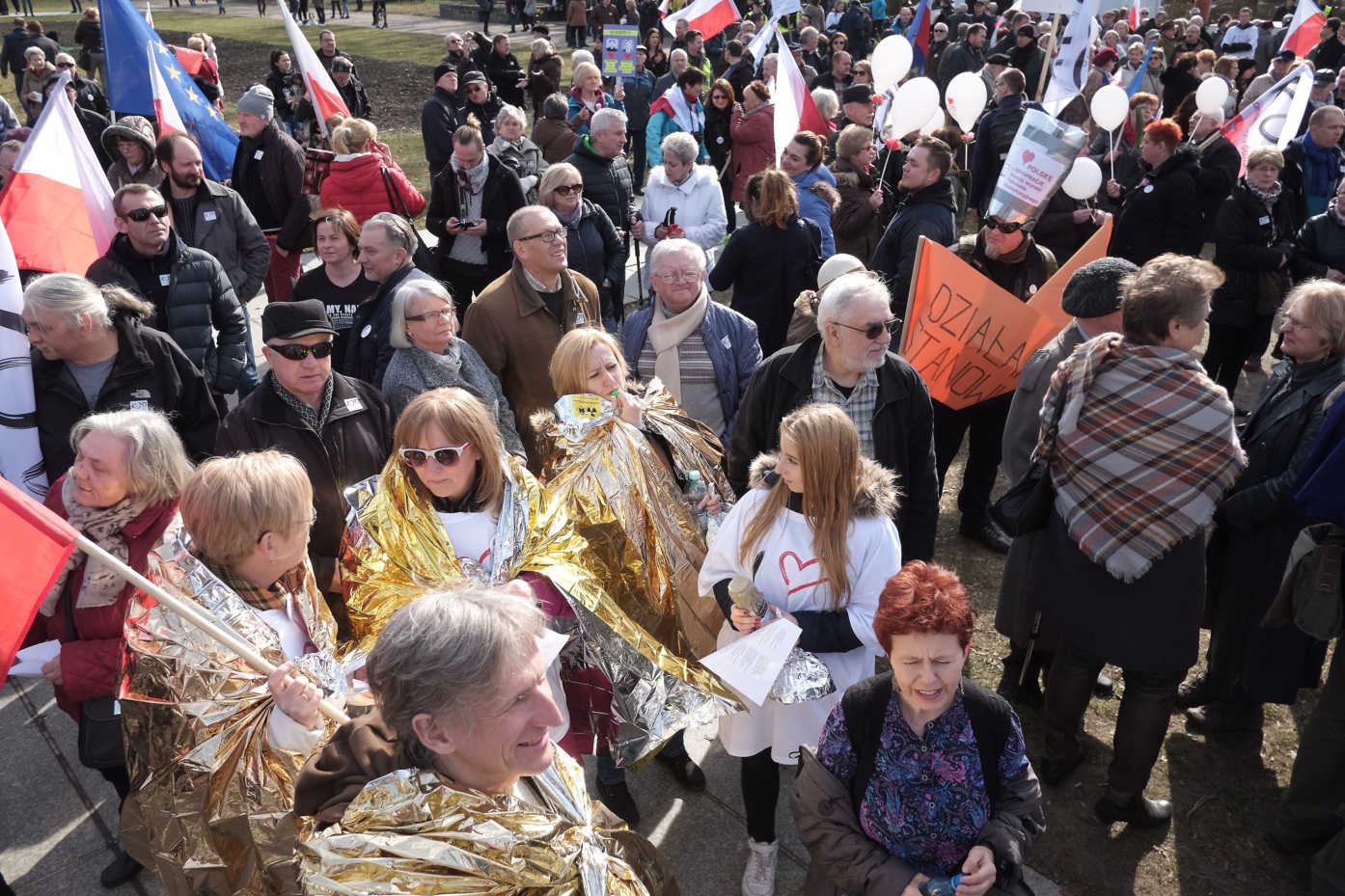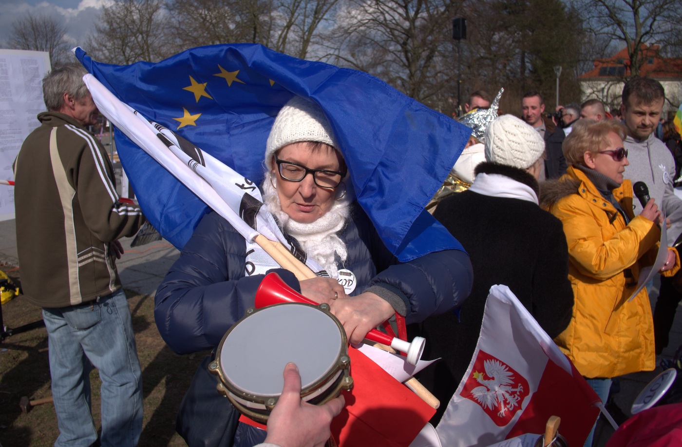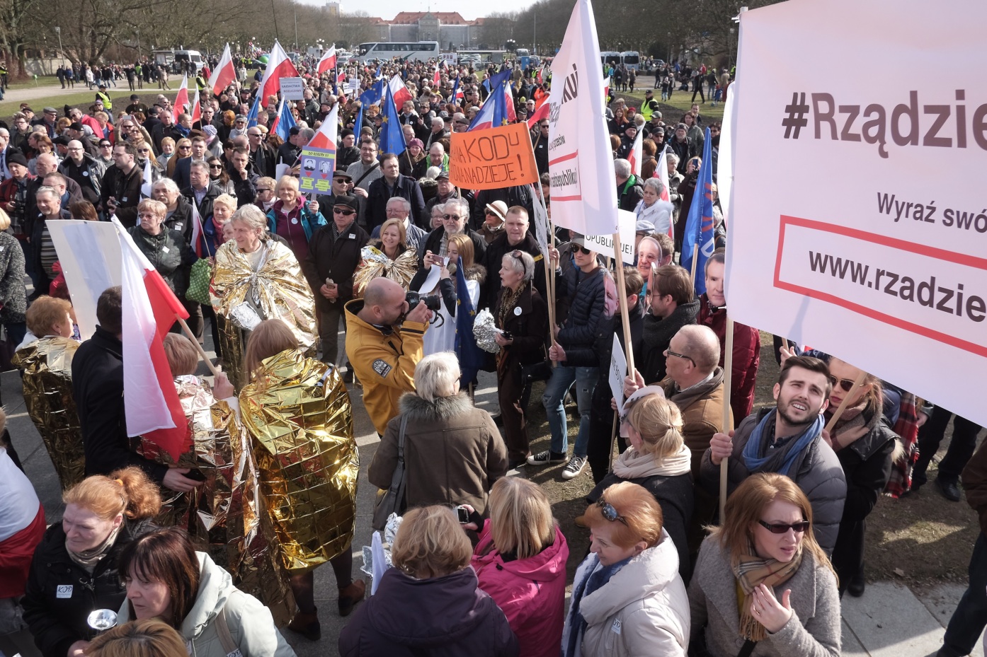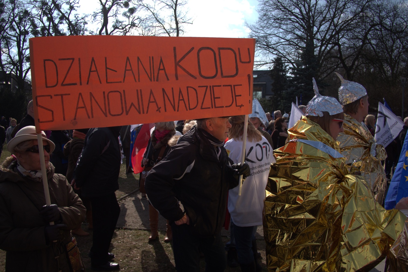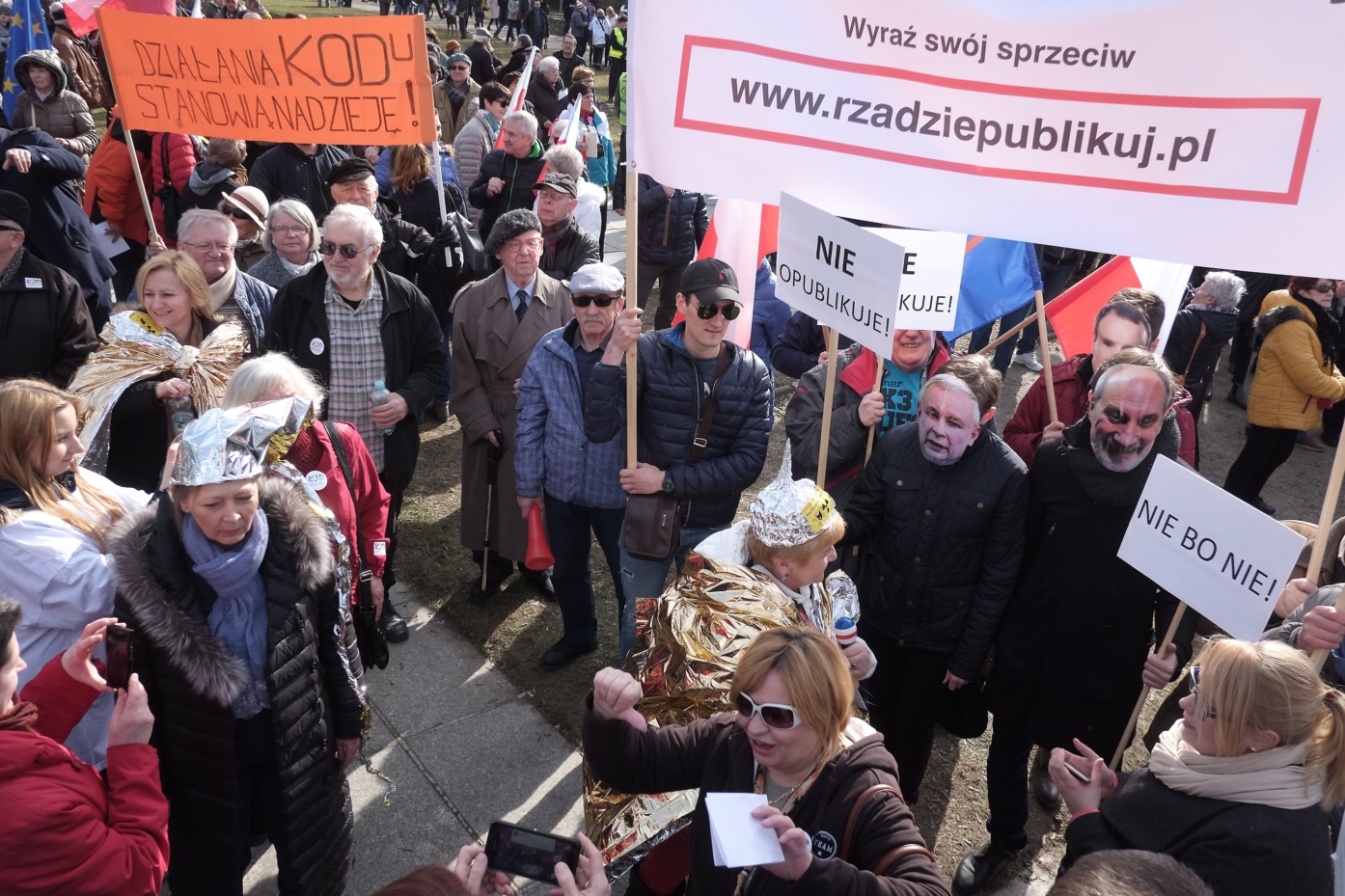 Sobotnia manifestacja Komitetu Obrony Demokracji pod Pomnikiem Czynu Polaków w Szczecinie.