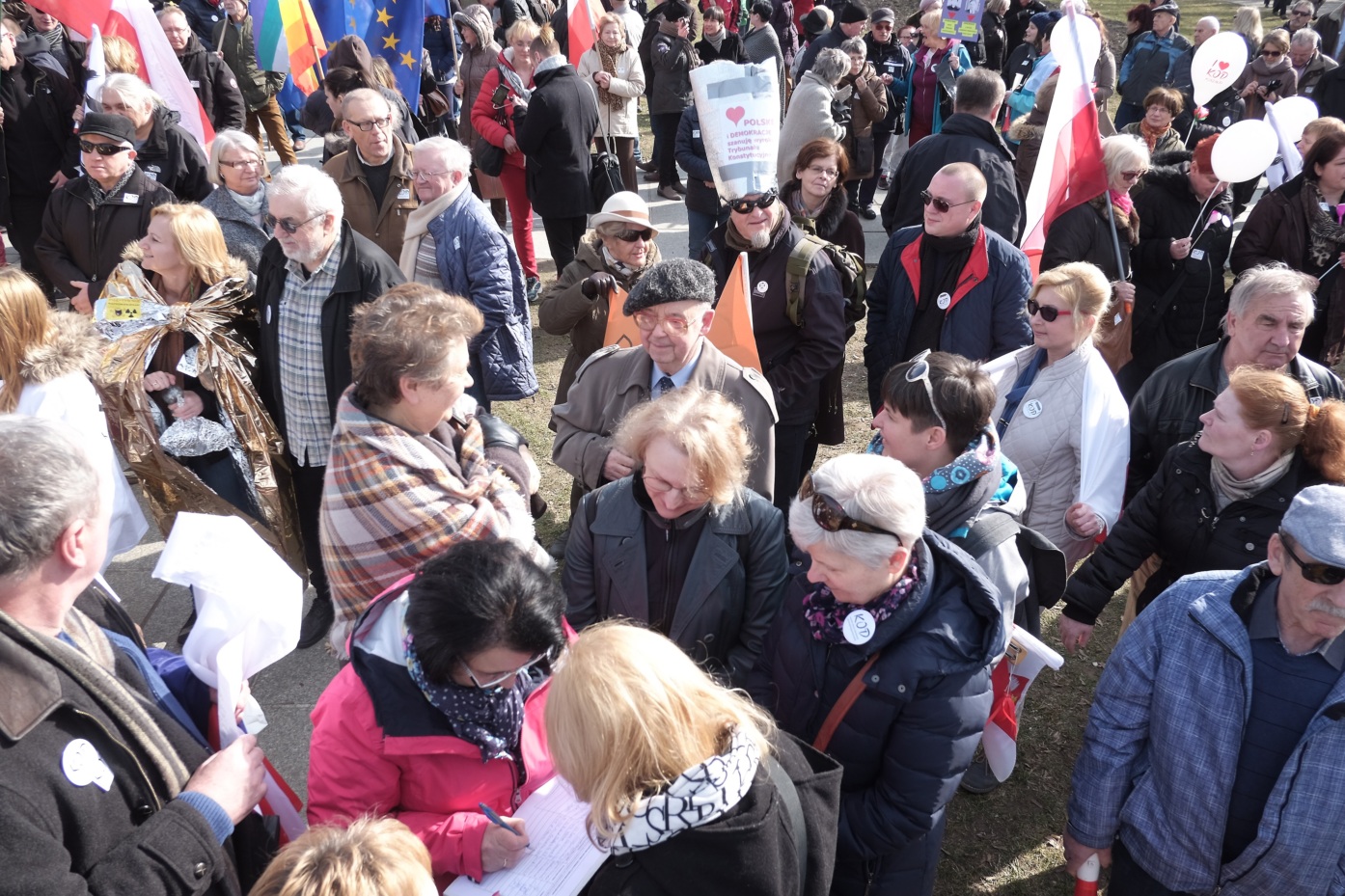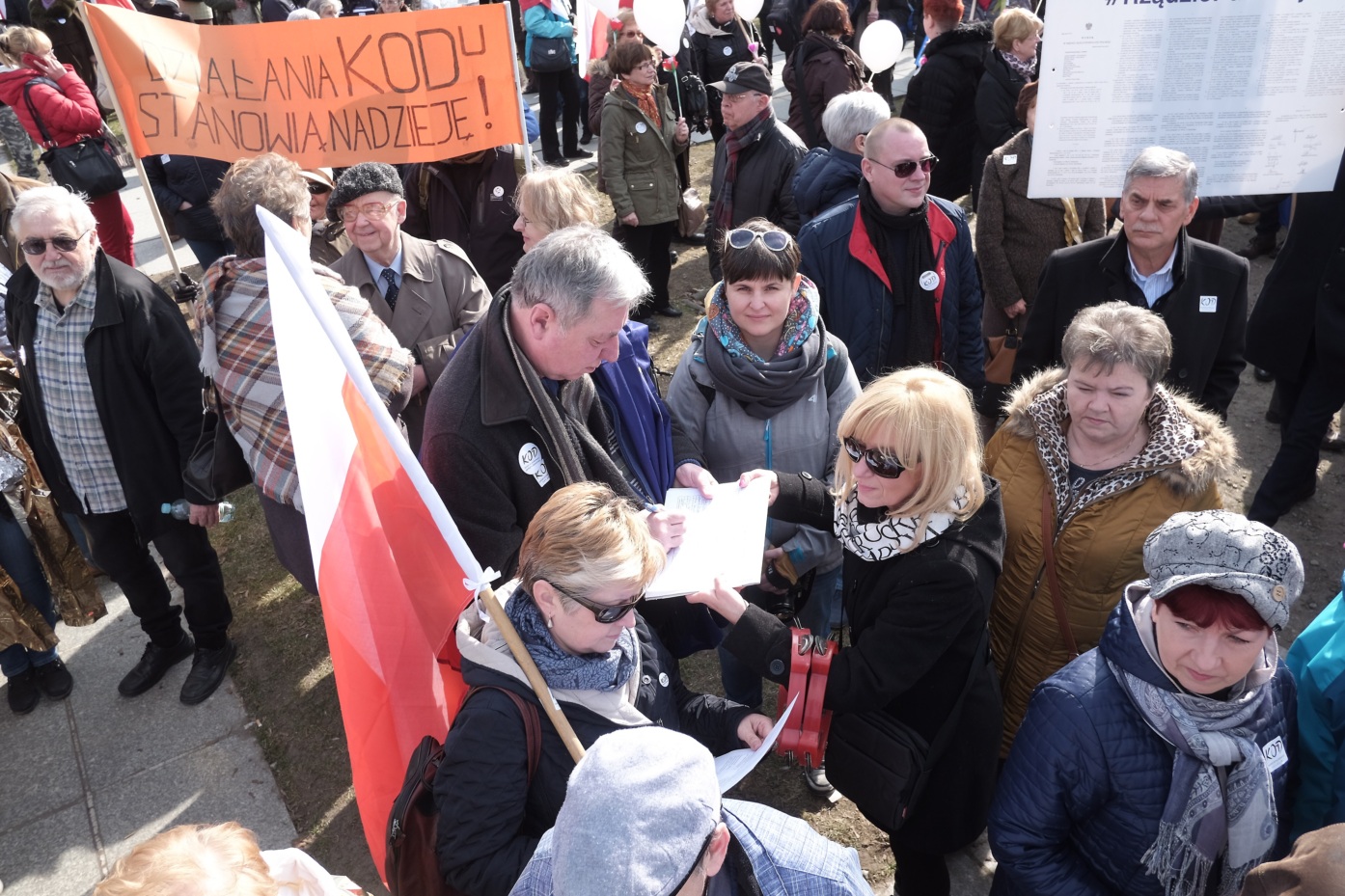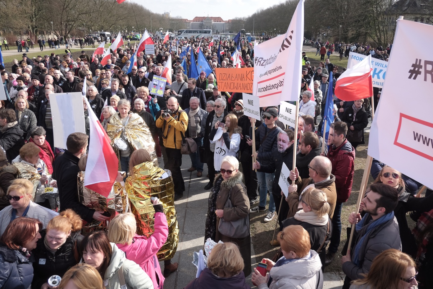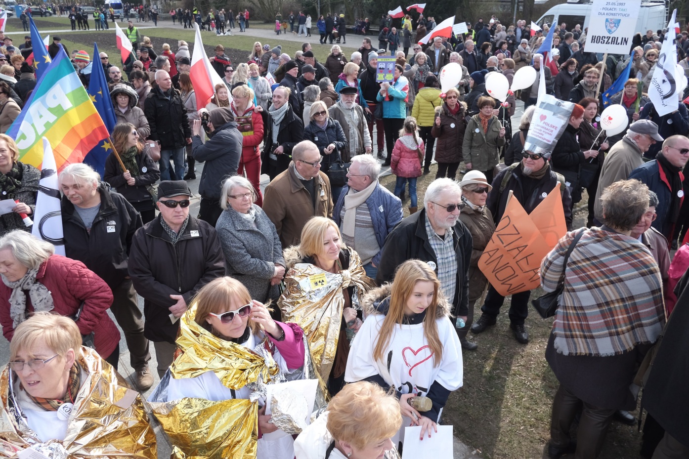 Sobotnia manifestacja Komitetu Obrony Demokracji pod Pomnikiem Czynu Polaków w Szczecinie.