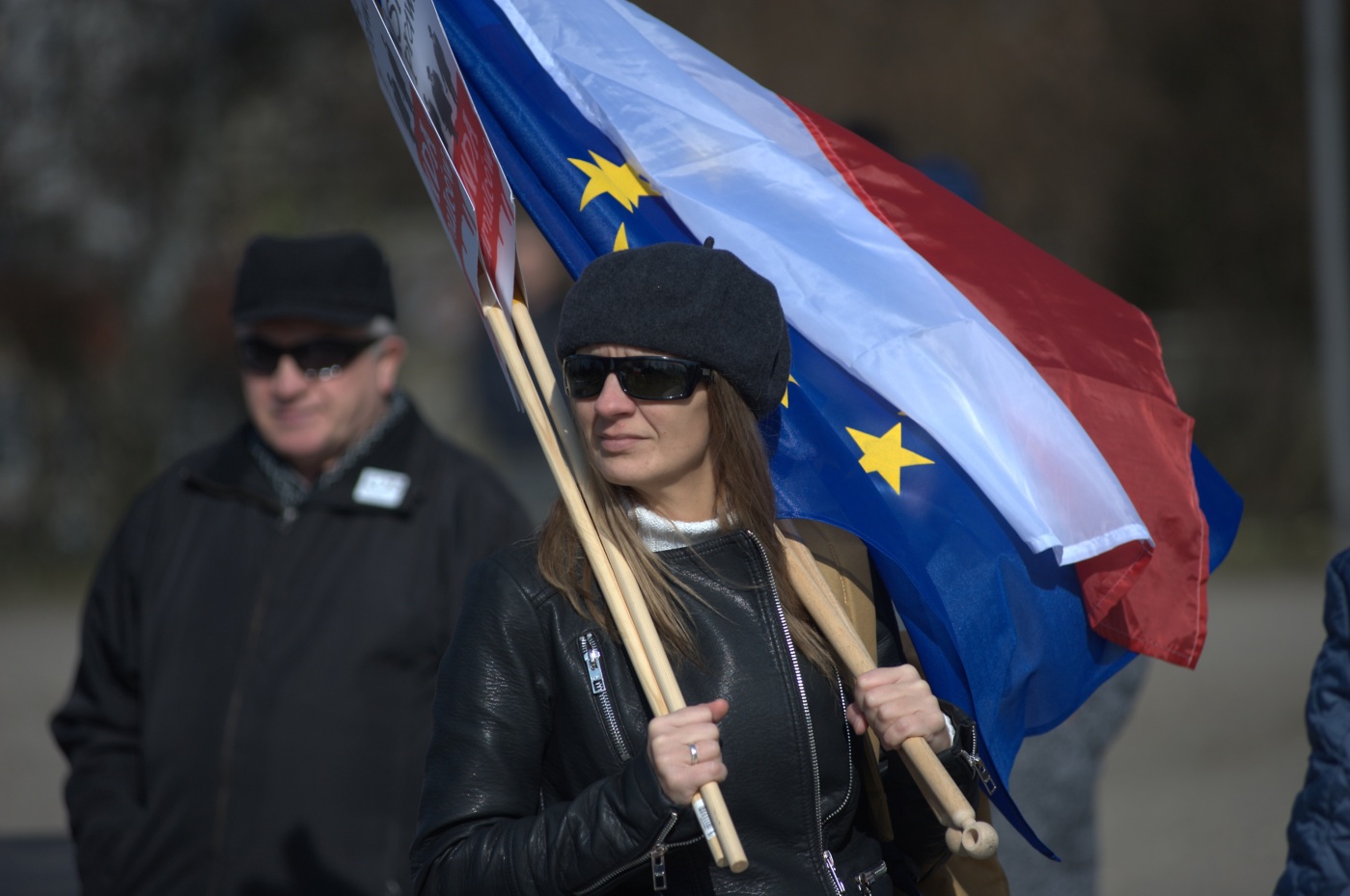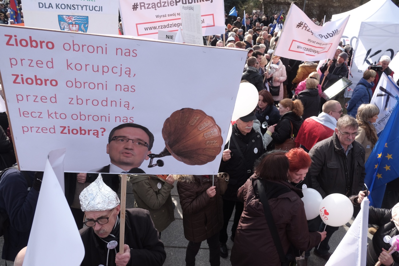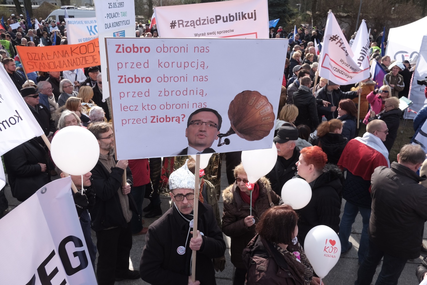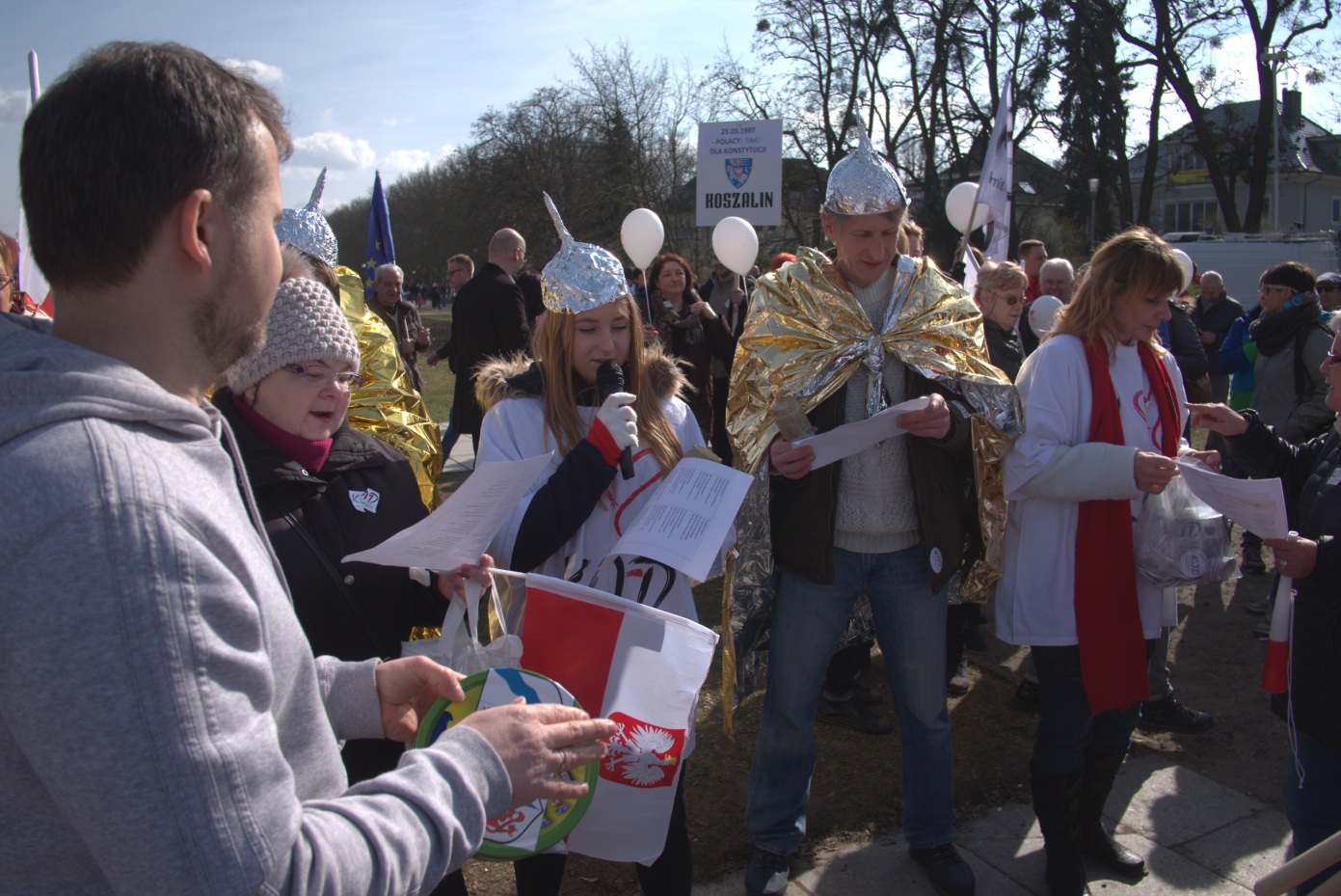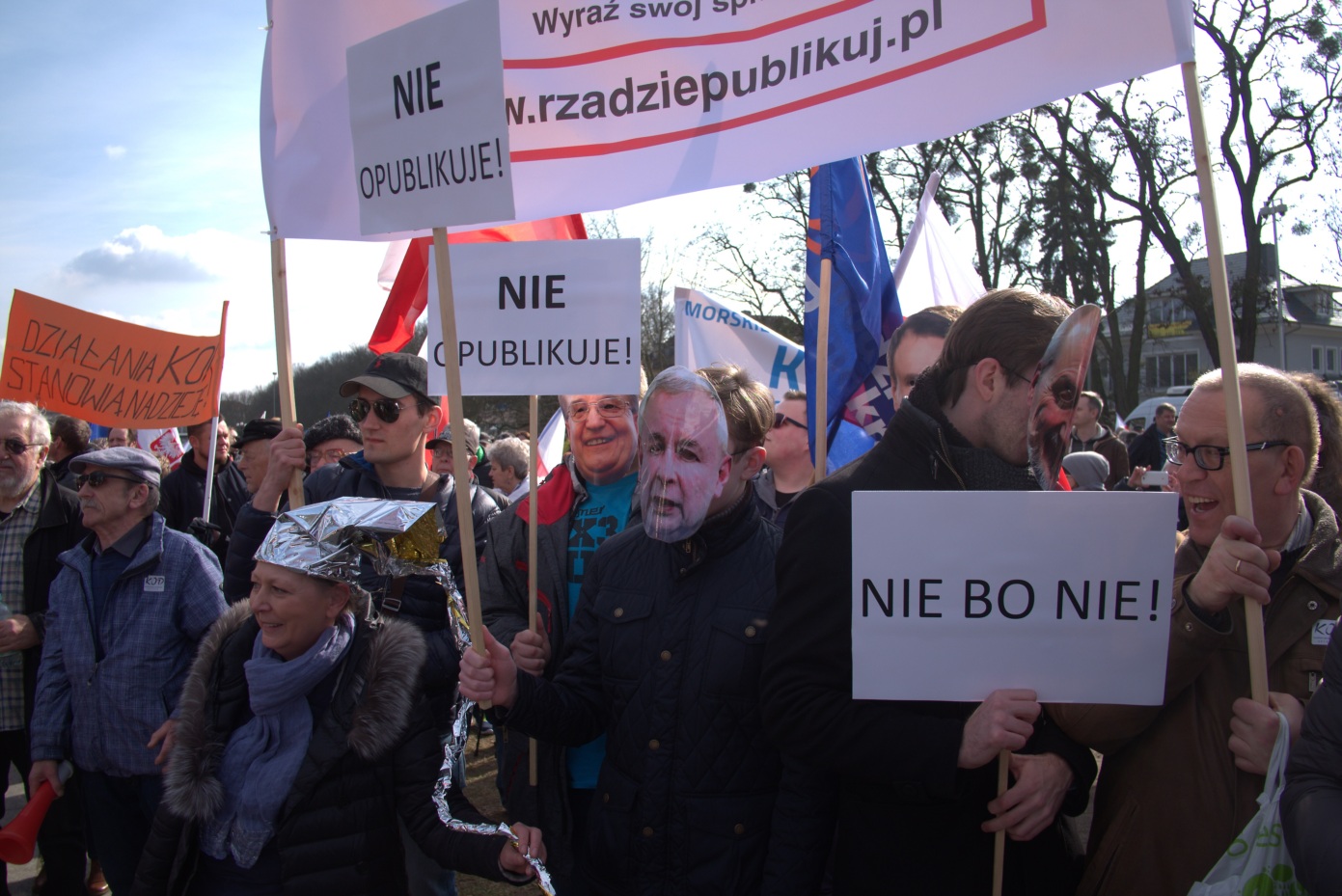 Sobotnia manifestacja Komitetu Obrony Demokracji pod Pomnikiem Czynu Polaków w Szczecinie.