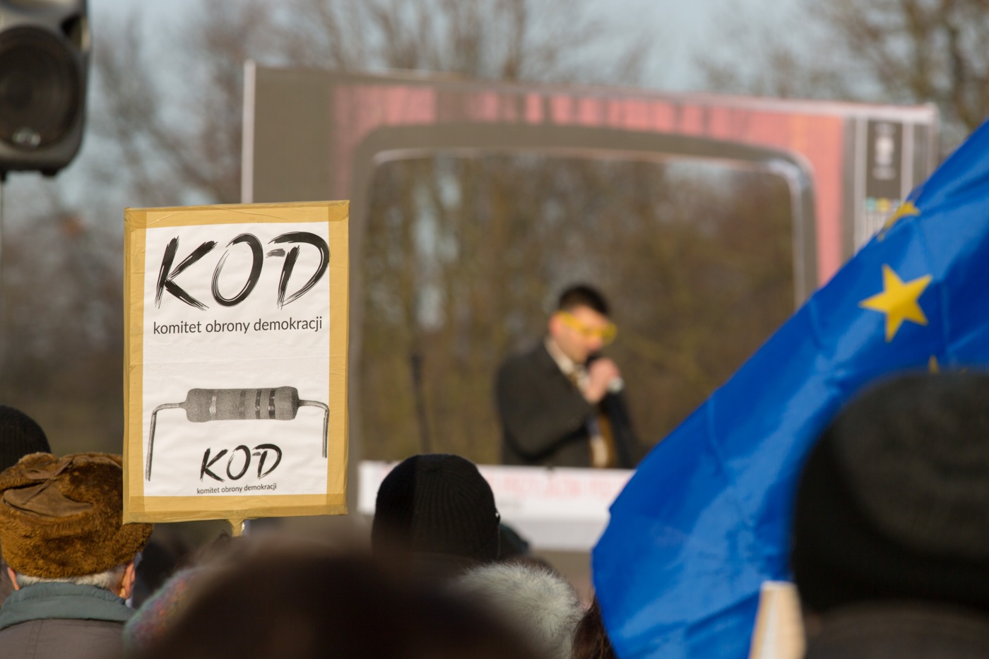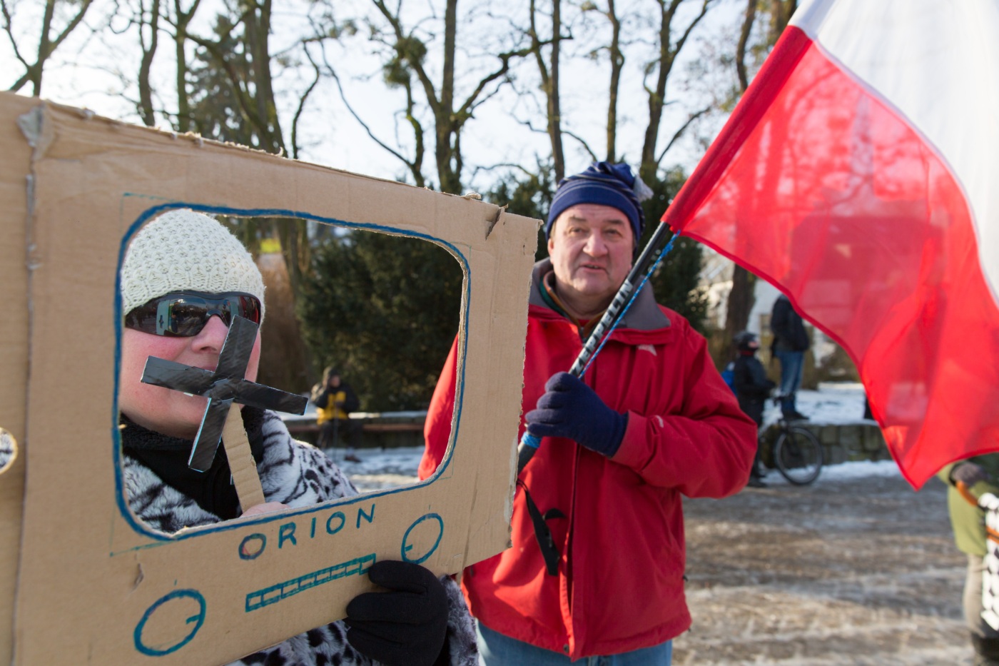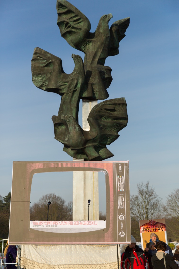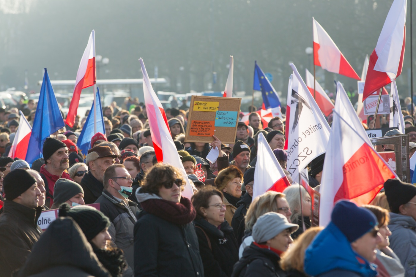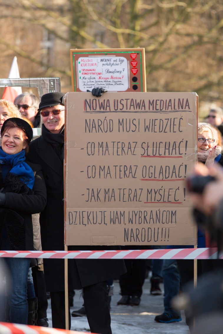 Pikieta zwolenników Komitetu Obrony Demokracji na Jasnych Błoniach w Szczecinie (9.01.2016 r.).