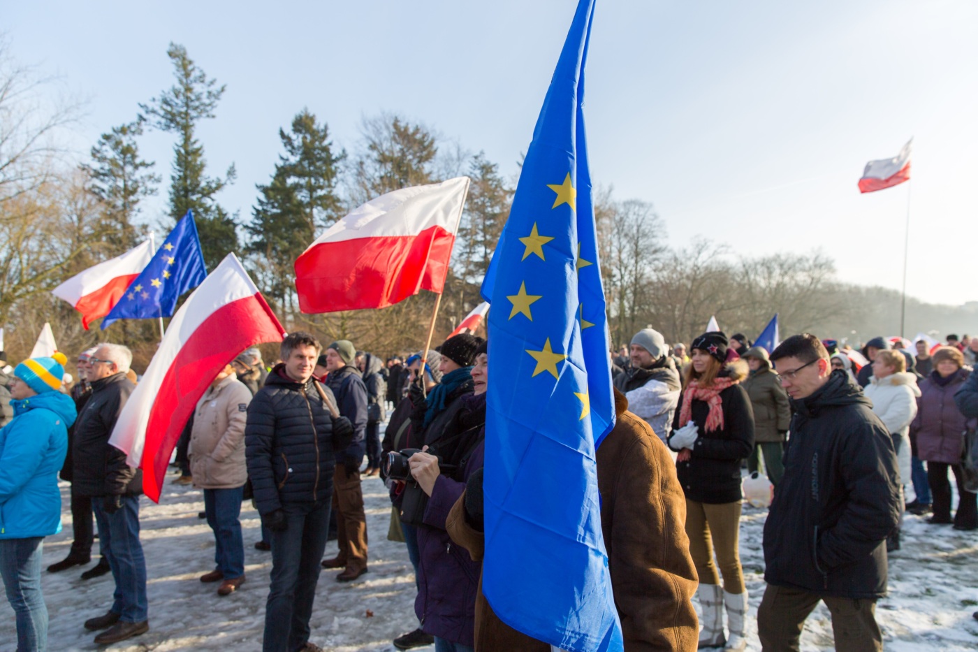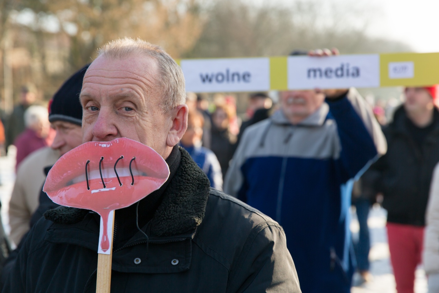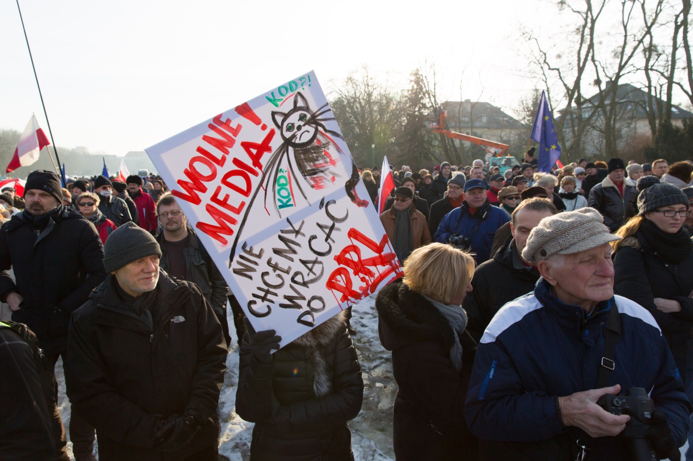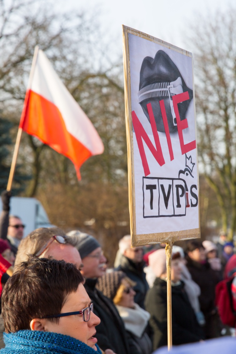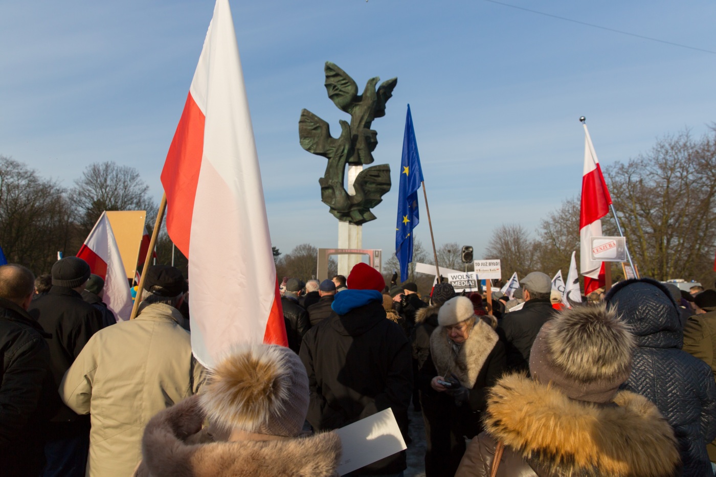 Pikieta zwolenników Komitetu Obrony Demokracji na Jasnych Błoniach w Szczecinie (9.01.2016 r.).