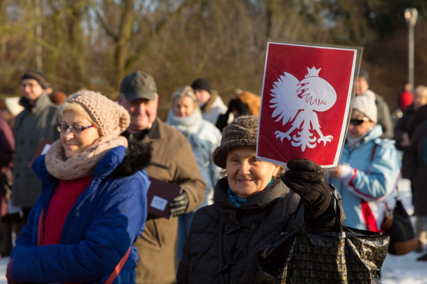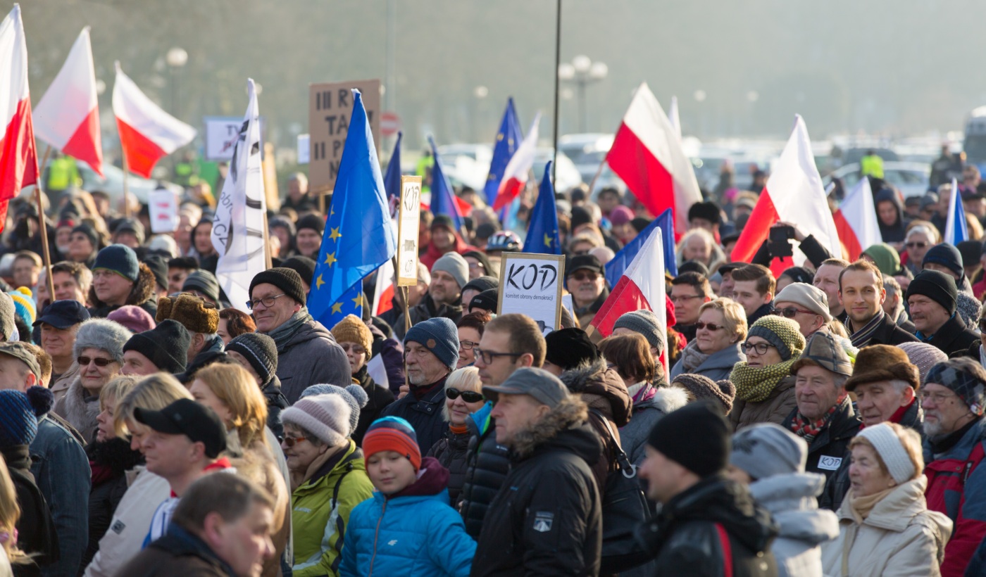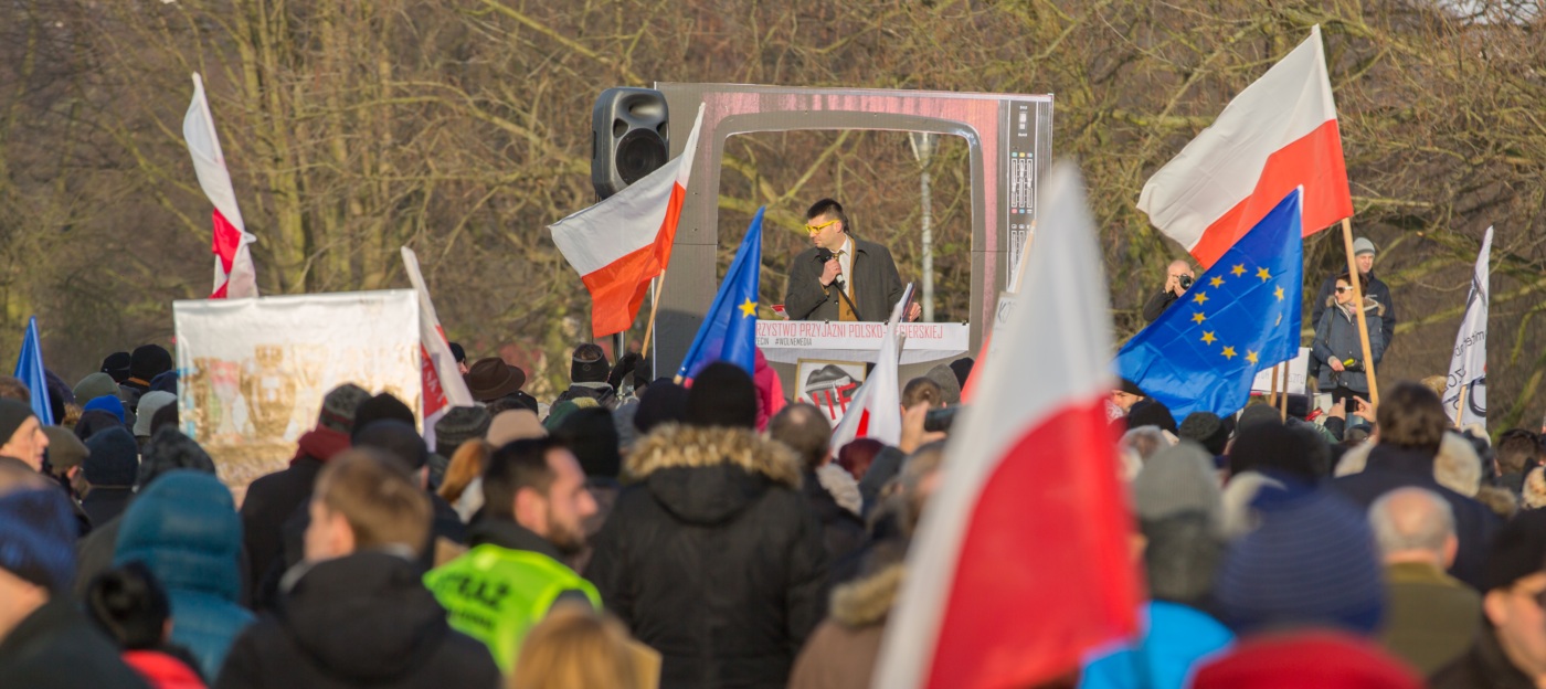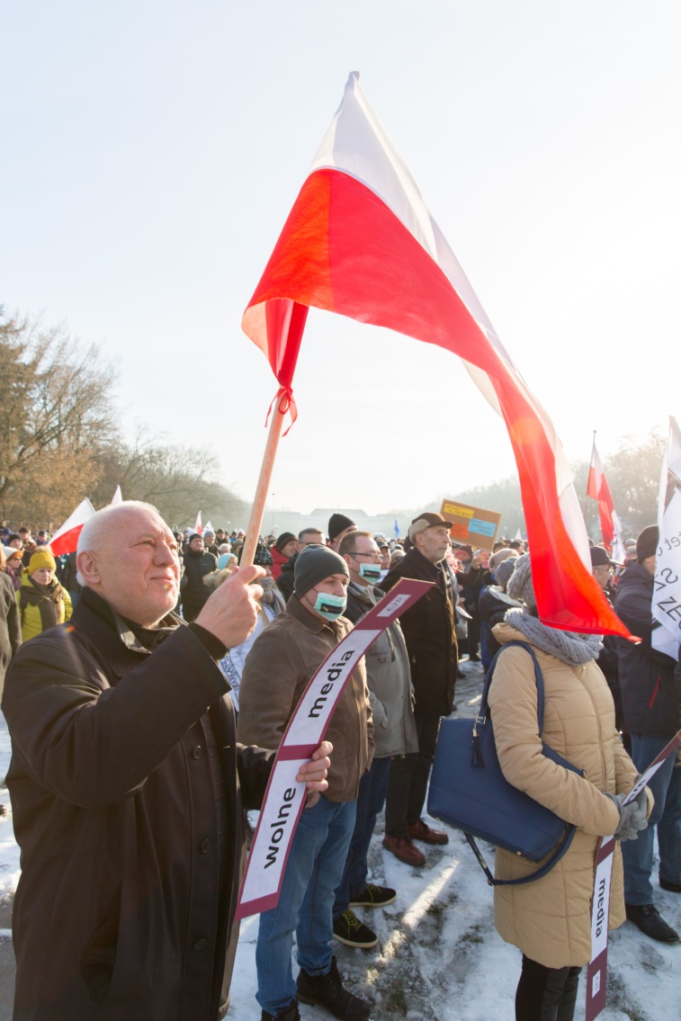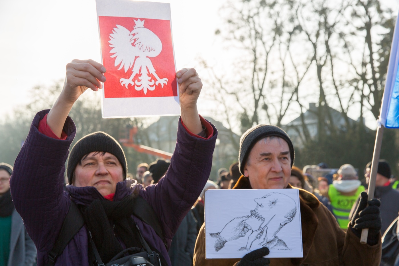 Pikieta zwolenników Komitetu Obrony Demokracji na Jasnych Błoniach w Szczecinie (9.01.2016 r.).