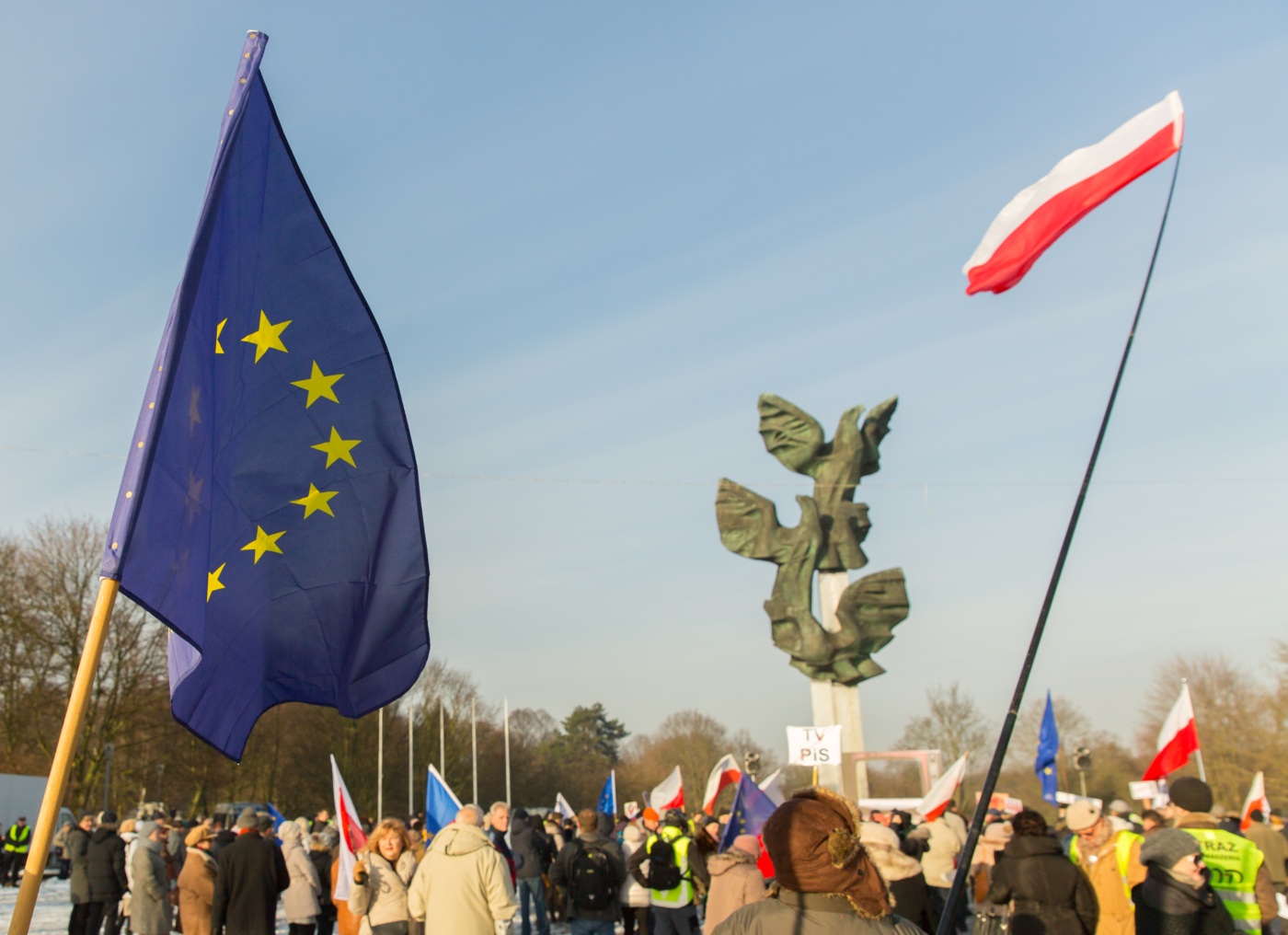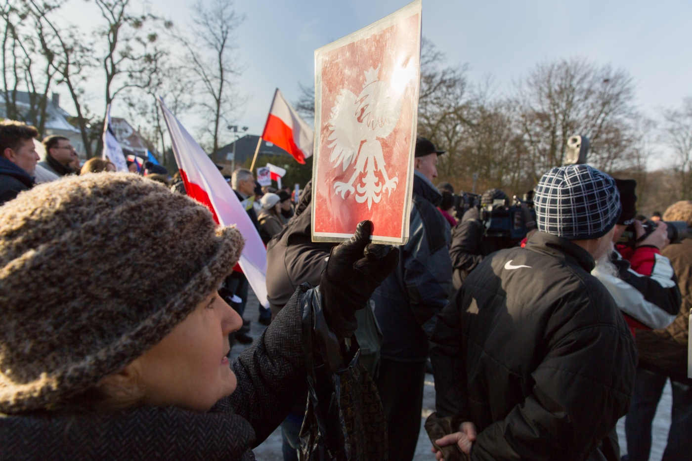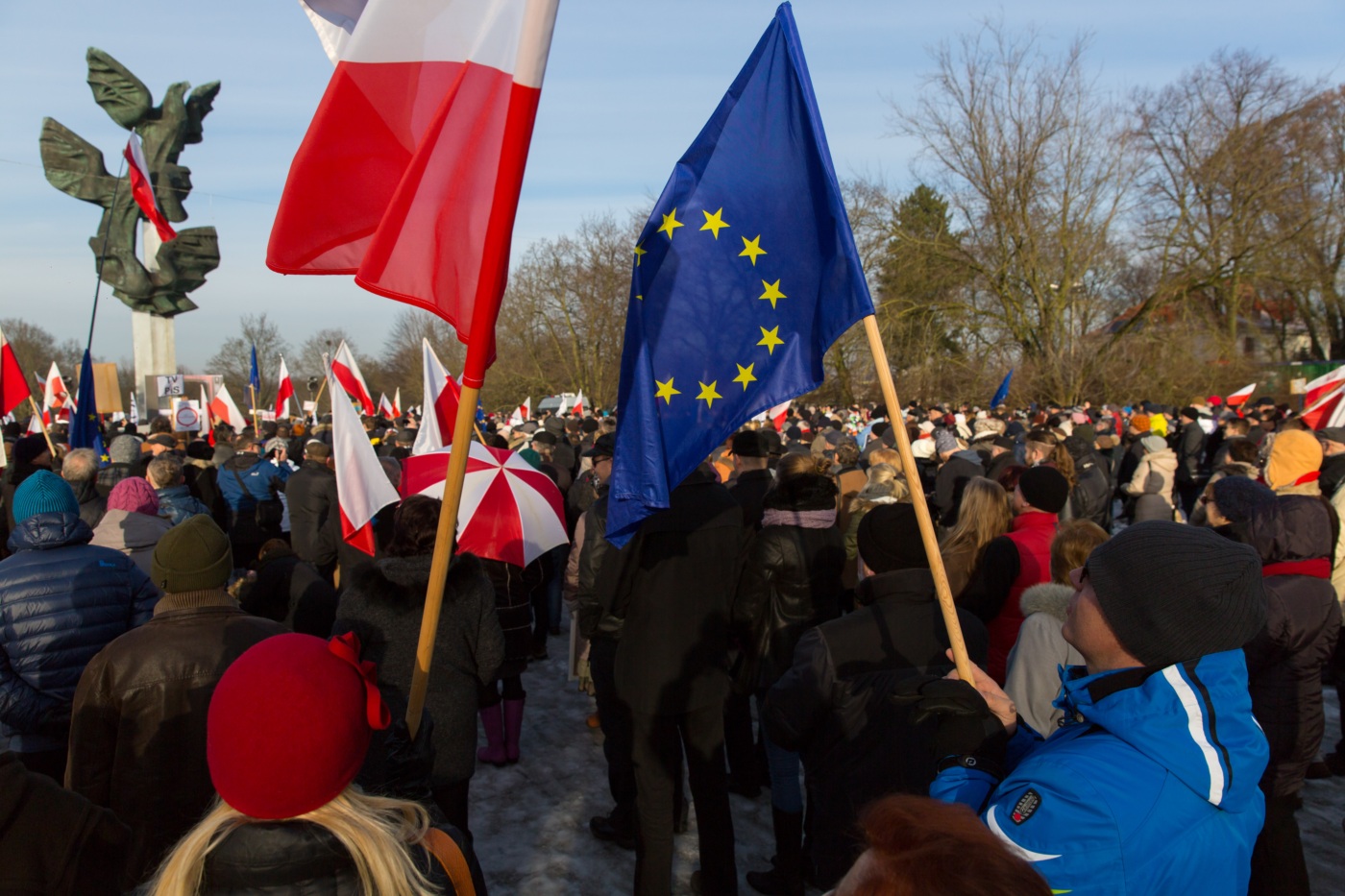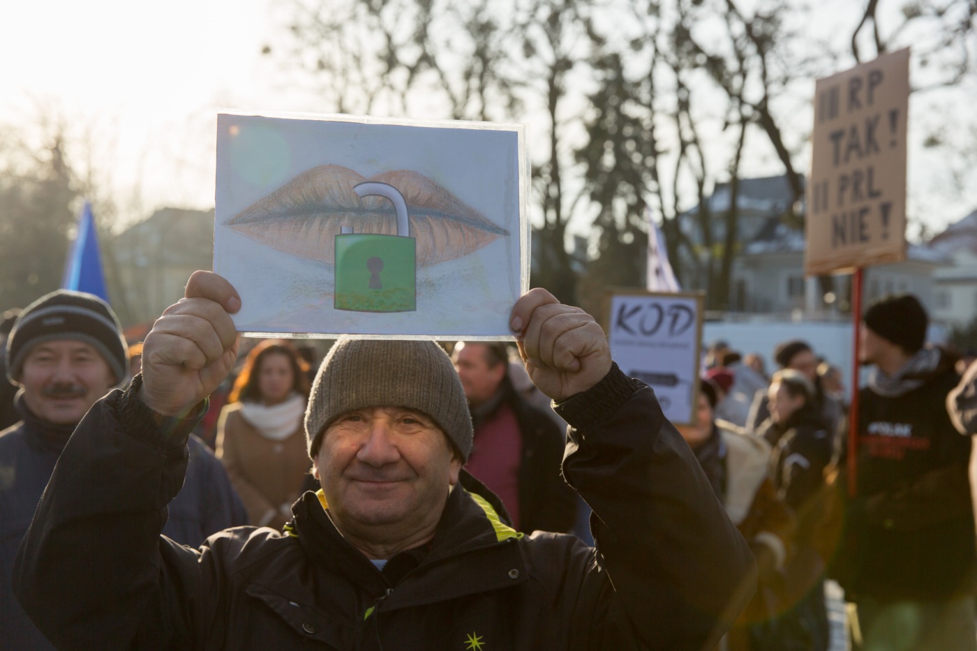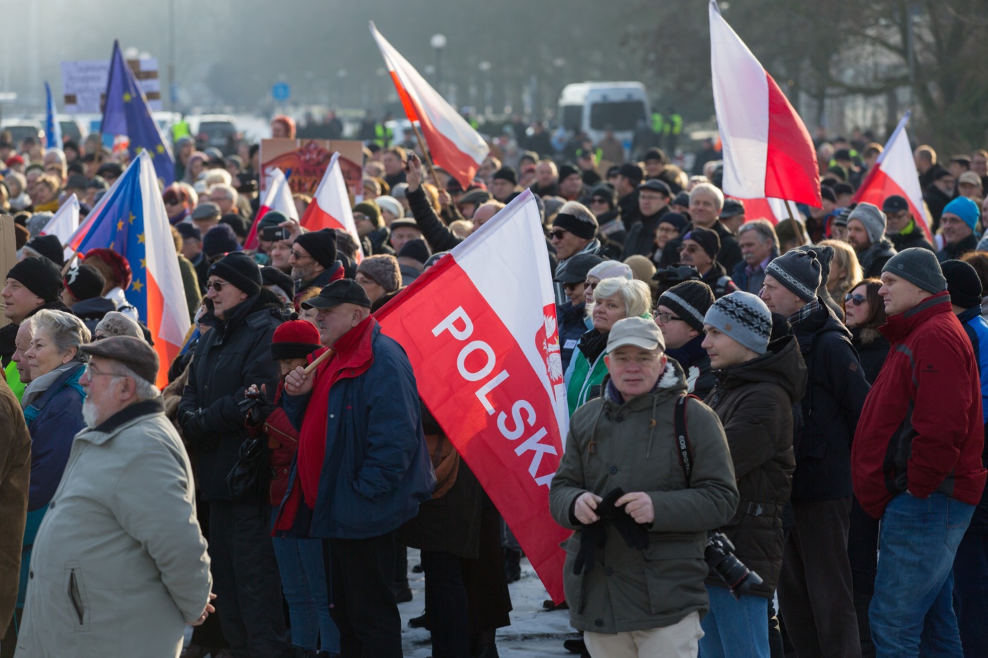 Pikieta zwolenników Komitetu Obrony Demokracji na Jasnych Błoniach w Szczecinie (9.01.2016 r.).