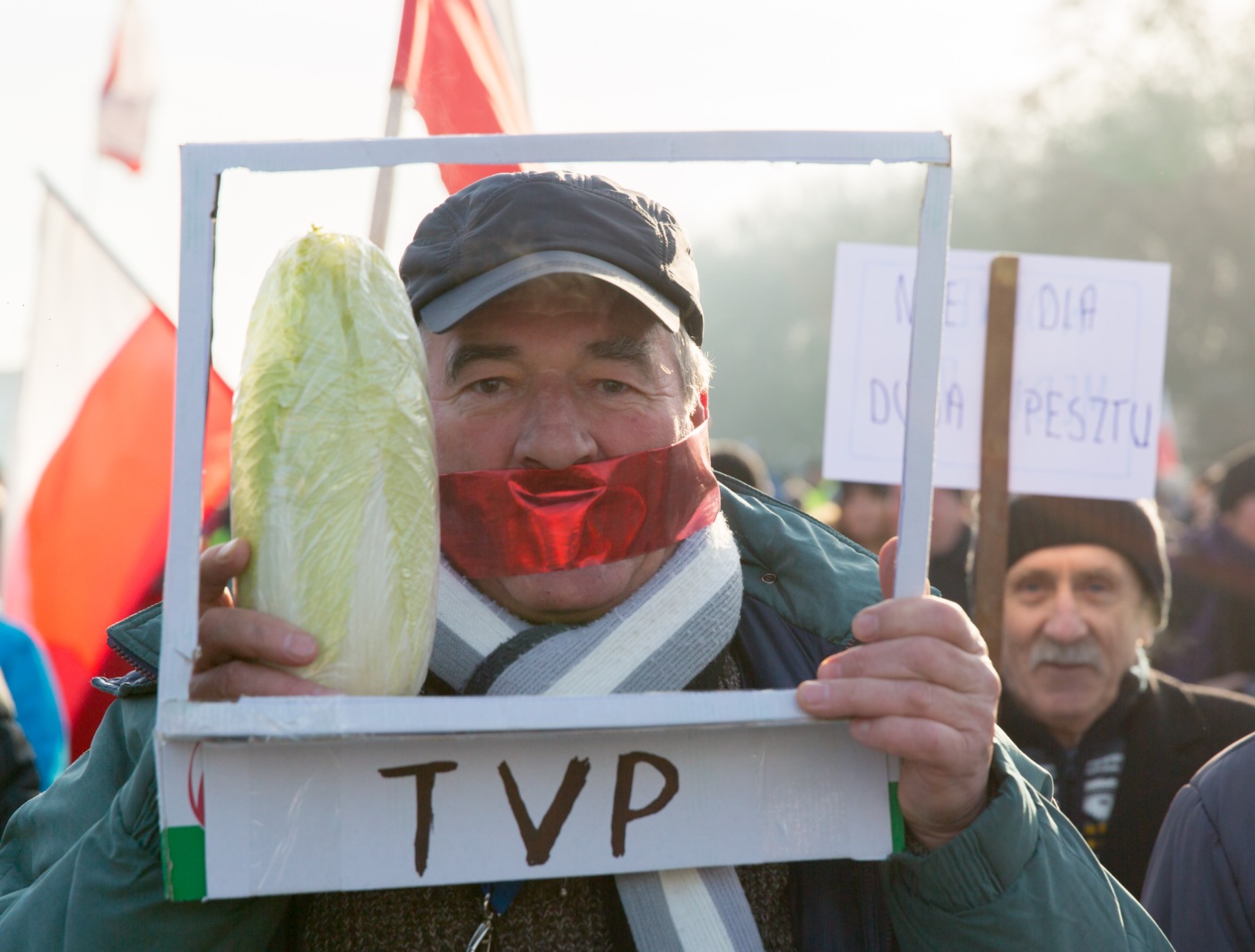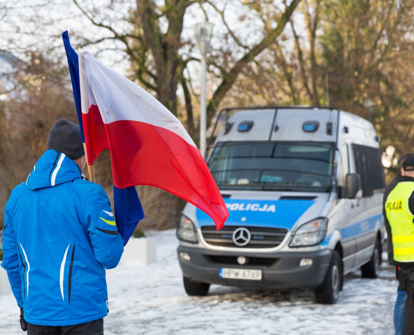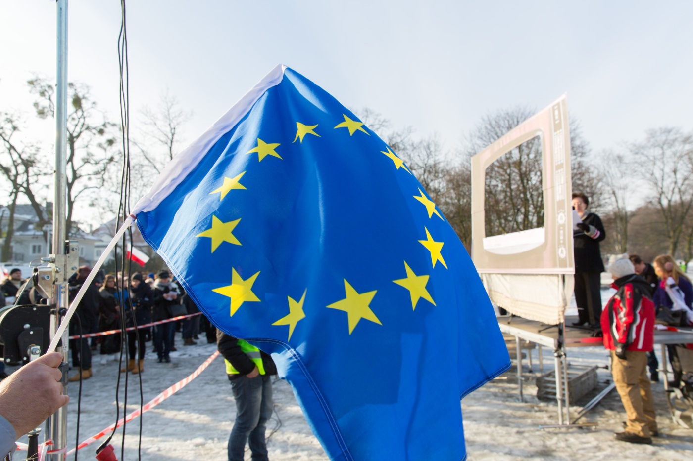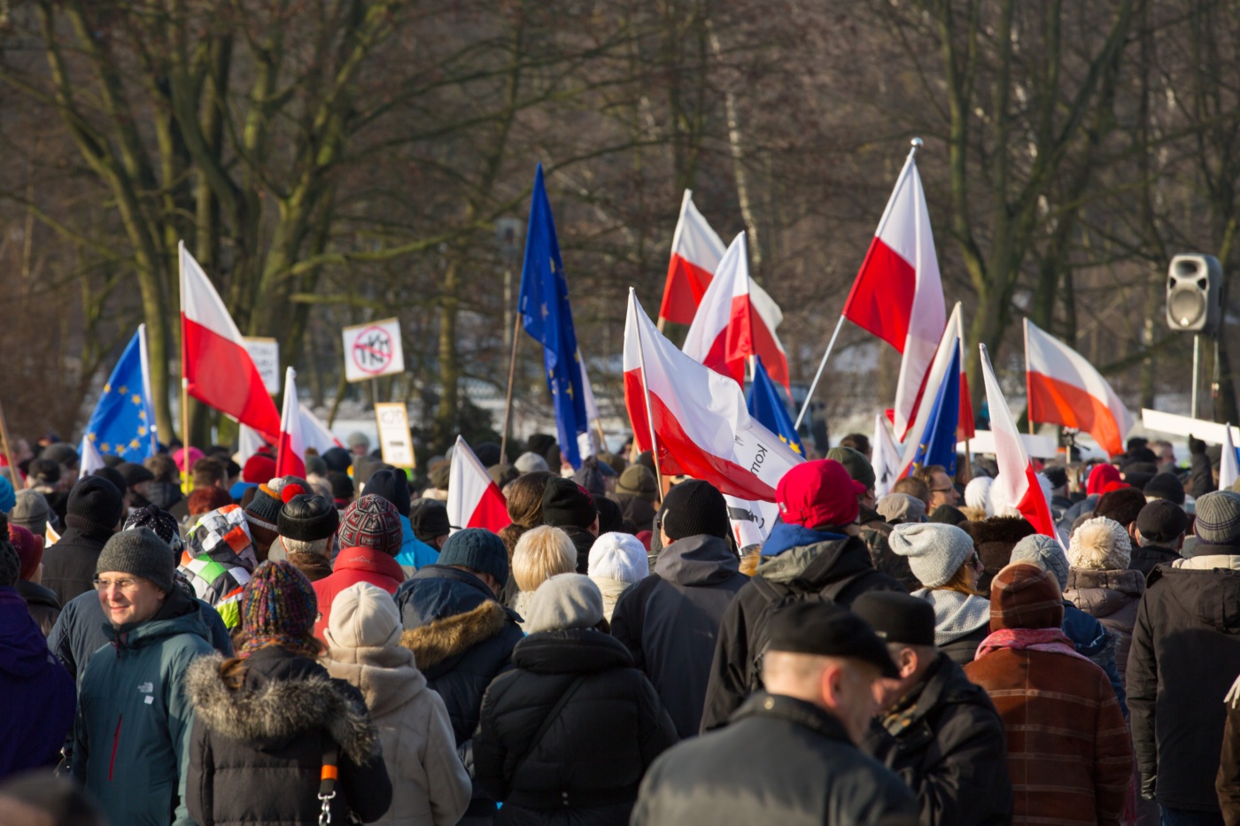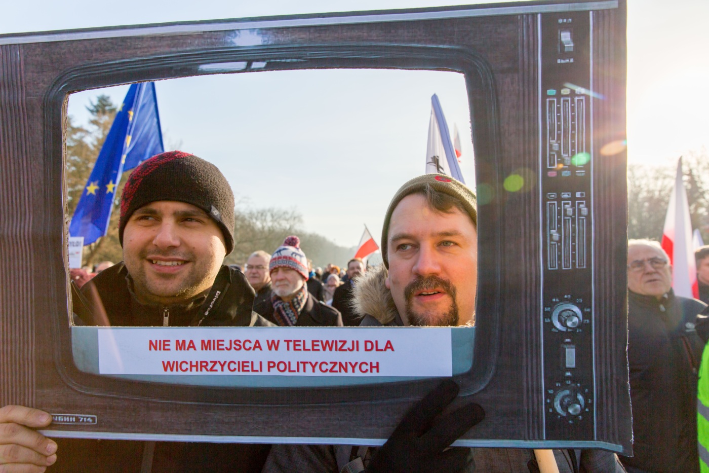 Pikieta zwolenników Komitetu Obrony Demokracji na Jasnych Błoniach w Szczecinie (9.01.2016 r.).