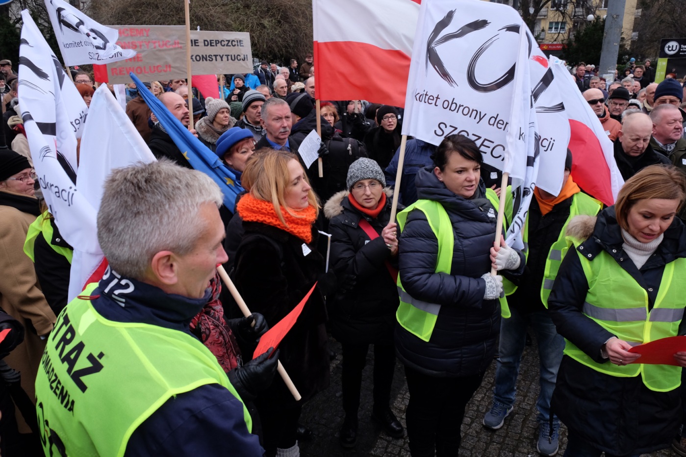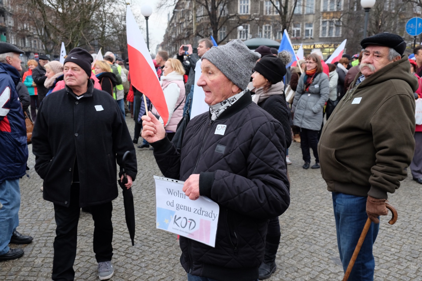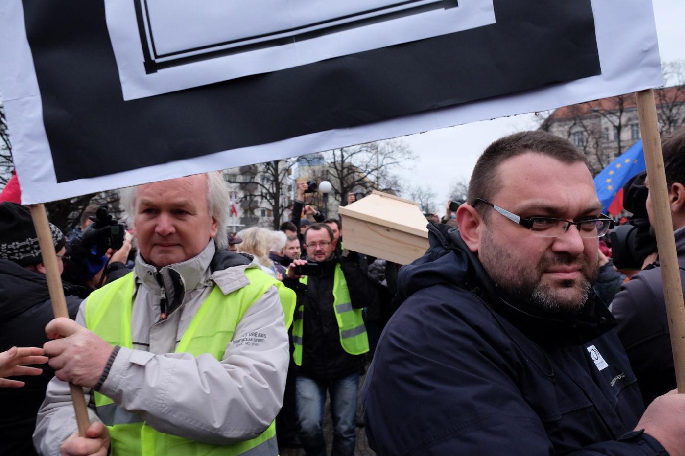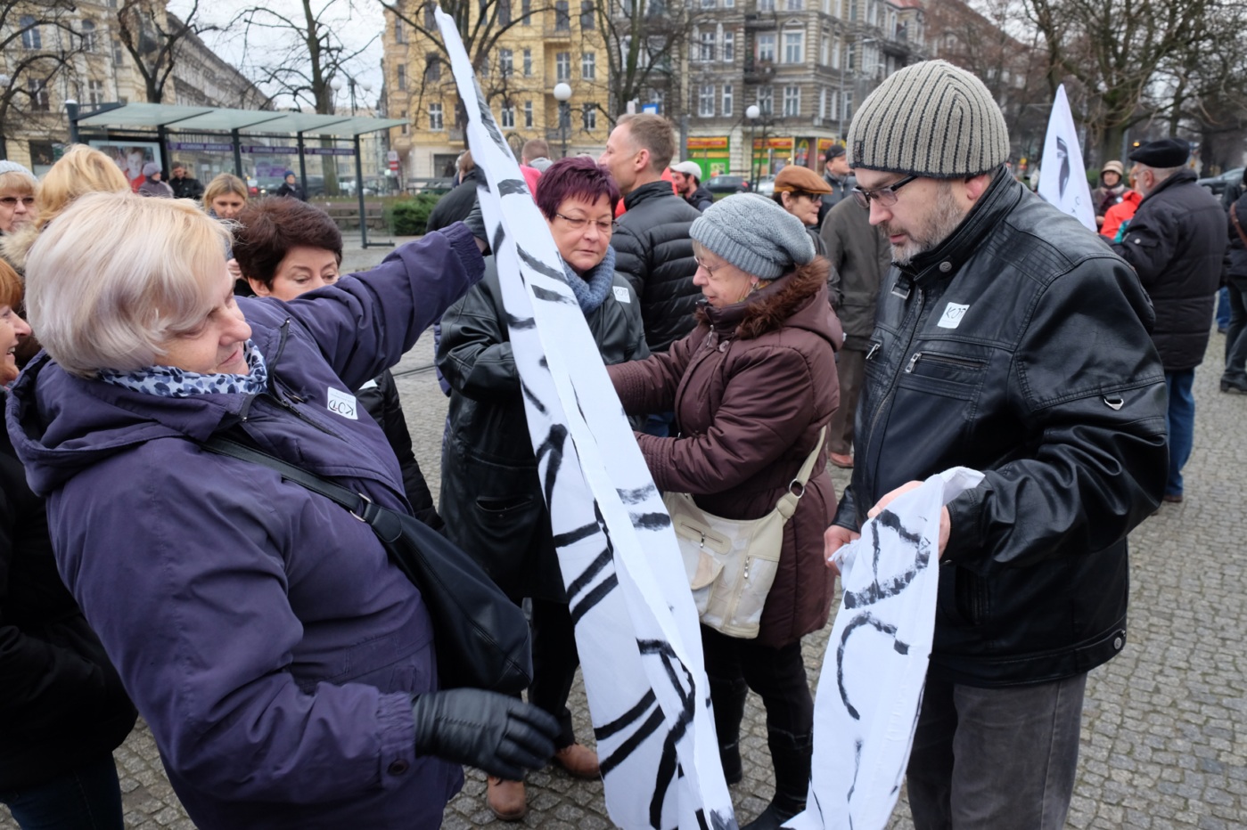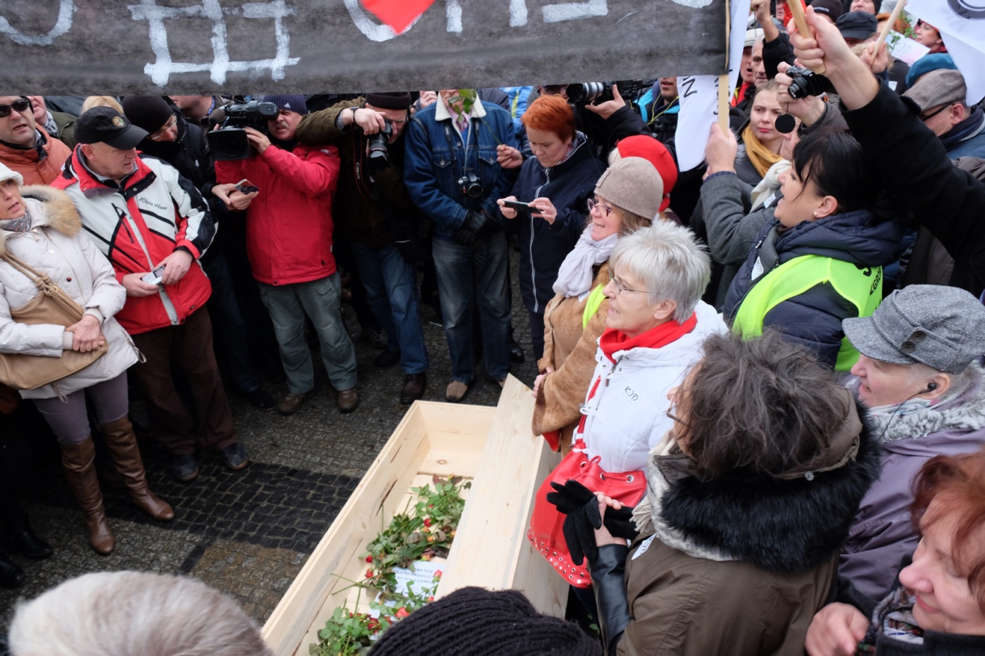 Kilkaset osób zebrało się w niedzielę (12.12.2015 r.) na pl. Grunwaldzkim w Szczecinie. Był to happening Komitetu Obrony Demokracji, który nie zgadza się z polityką rządu Prawa i Sprawiedliwości. W symbolicznej trumnie złożono Konstytucję RP.