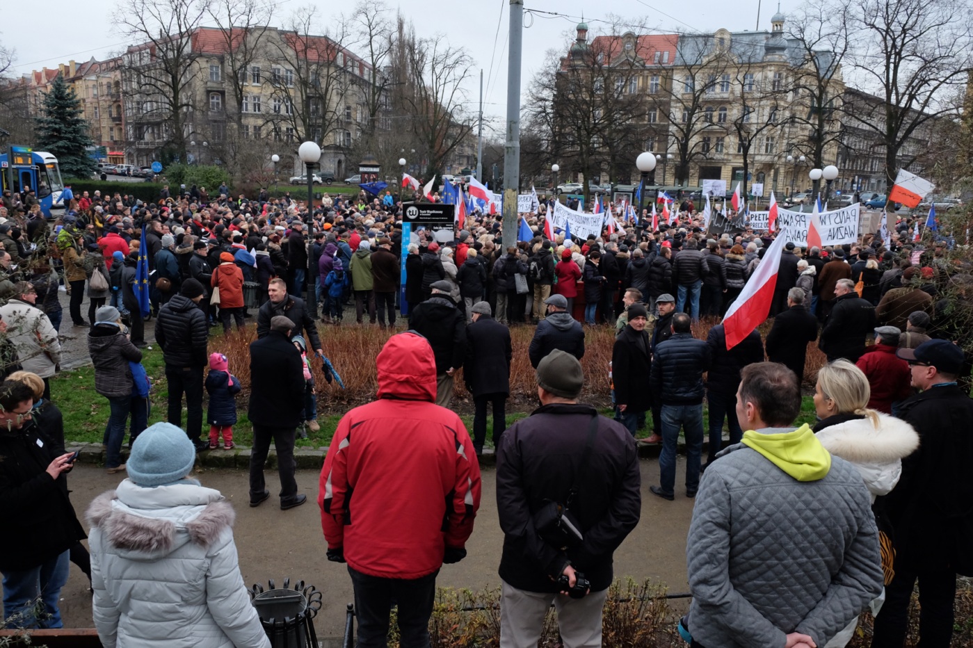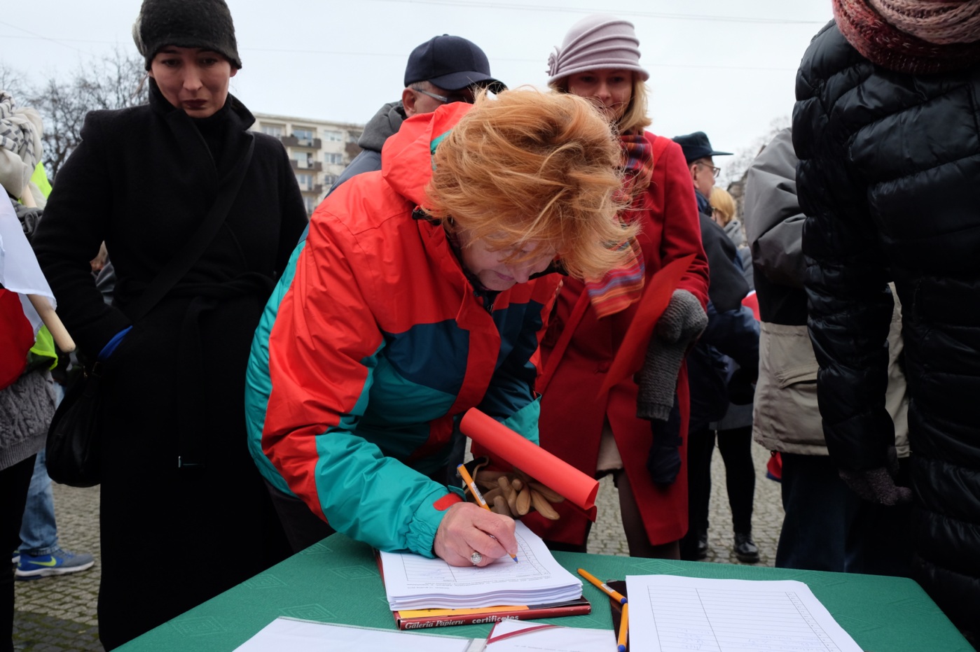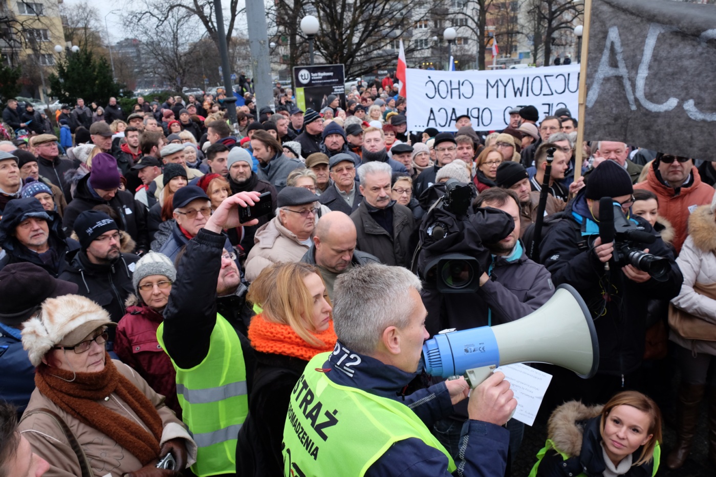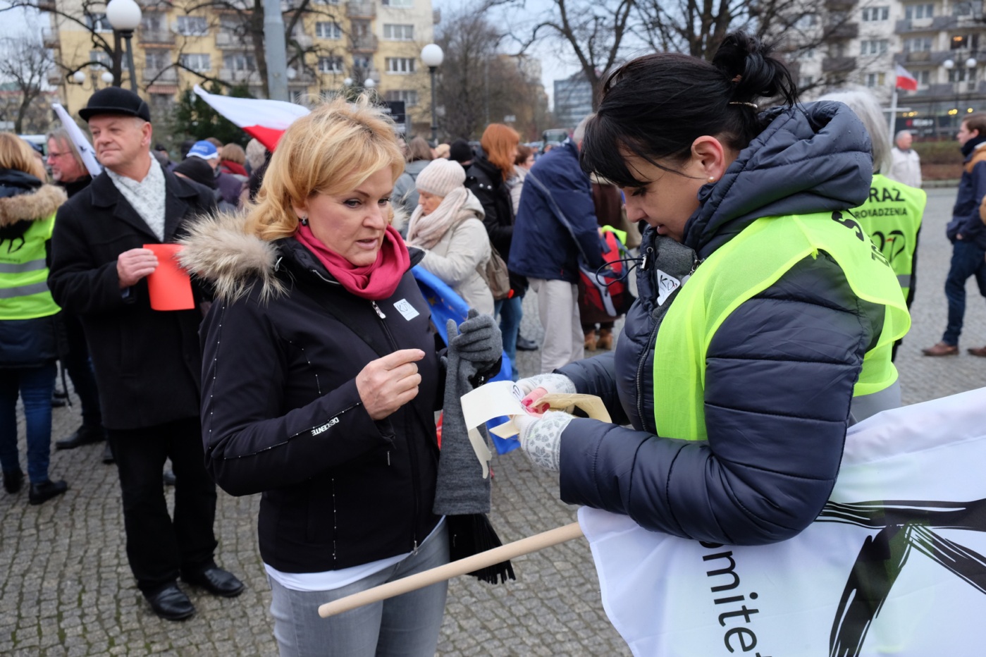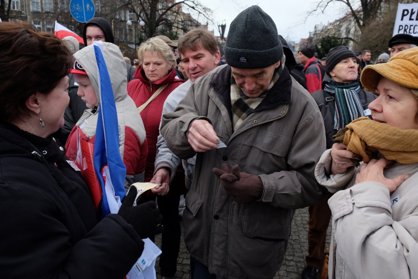 Kilkaset osób zebrało się w niedzielę (12.12.2015 r.) na pl. Grunwaldzkim w Szczecinie. Był to happening Komitetu Obrony Demokracji, który nie zgadza się z polityką rządu Prawa i Sprawiedliwości. W symbolicznej trumnie złożono Konstytucję RP.