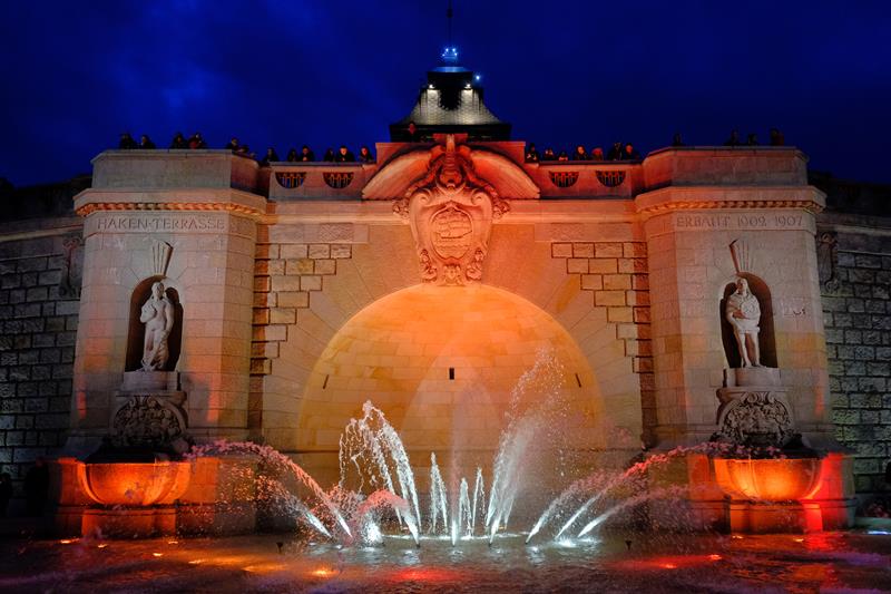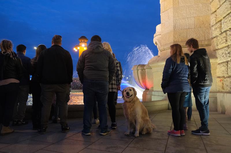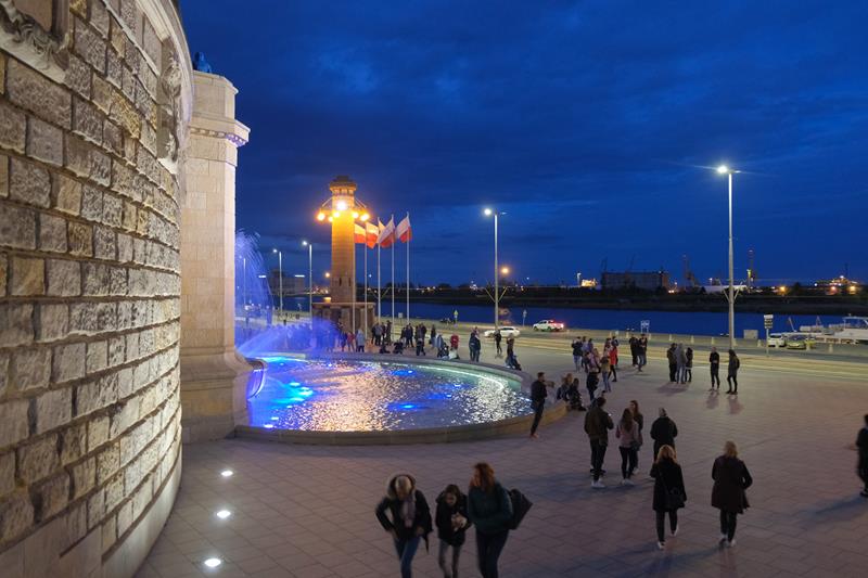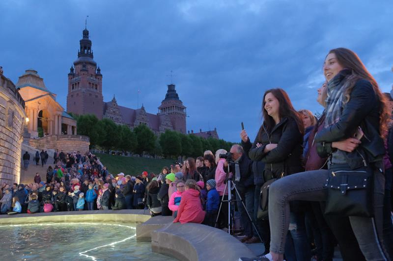 Na co dzień fontanna na Wałach Chrobrego jest podświetlona. Zaprogramowano ją tak, by strumienie wody tryskały w określonym rytmie. Podczas pierwszej prezentacji z głośników poleciał utwór pochodzący z filmu „Piraci z Karaibów”. Niestety zagłuszał go szum wody i muzykę ledwo było słychać. Pokaz warto jednak zobaczyć, bo wygląda efektownie.