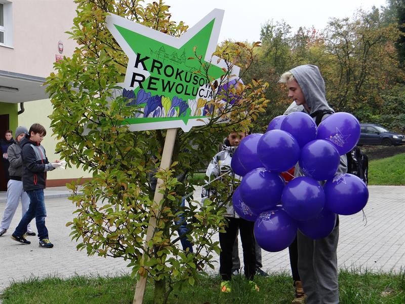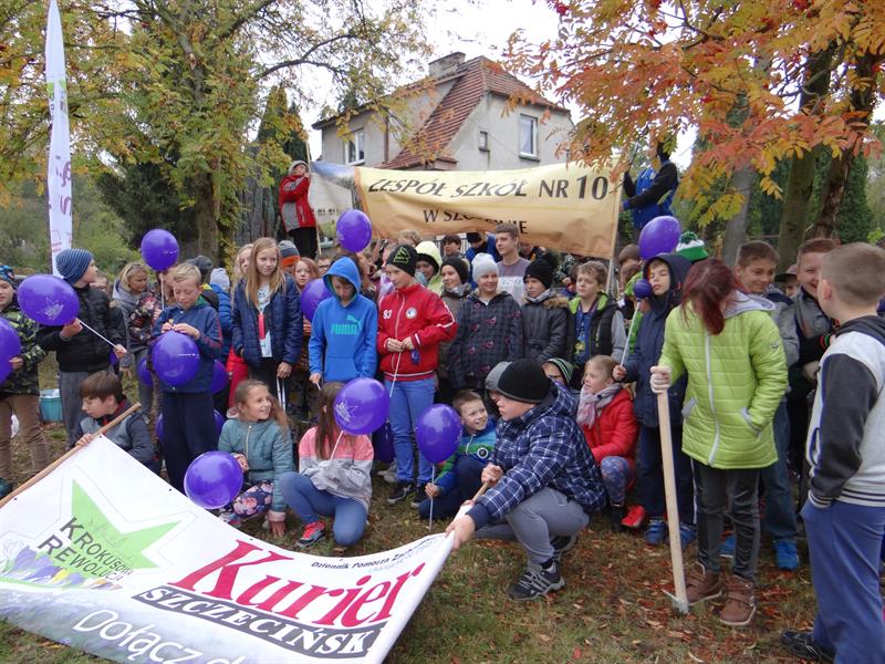 W czwartek, 20 października, Kurierowe sztandary „krokusowej rewolucji” powiewały nad Skolwinem, przed Zespołem Szkół nr 10 przy ul. Karpackiej. Uczniowie placówki to nasi przyjaciele, chętni do upiększania Szczecina nie od dziś. Wcześniej z ich udziałem posadzonych zostało już tysiąc krokusów. Tym razem uczniów klas 5a, 6a i 6b czekało większe wyzwanie – do posadzenia było 2500 nowych. Ich zakup sfinansowali sponsorzy prywatni pp. Anna i Andrzeja Kawka, rodzice piątoklasisty Witka, jednego z uczniów szkoły.