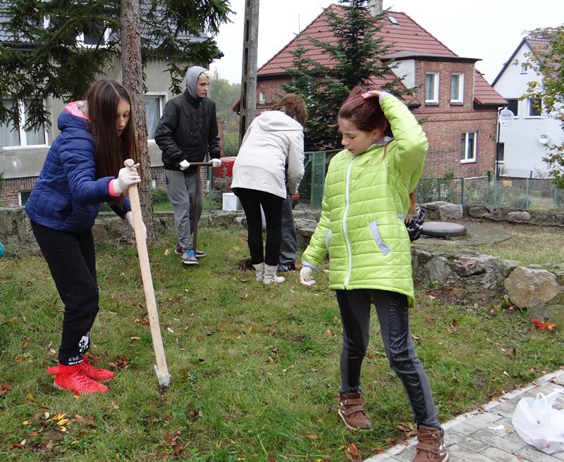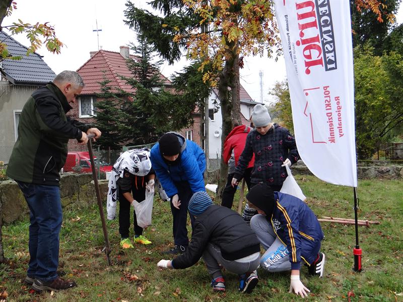 Efekt swojej pracy w plenerze i przemianę trawnika wzdłuż szpaleru jarząbów na przyszkolnym placu w nowy dywan kwiatowy z zasadzonych przez siebie wczoraj fioletowych i niebieskich w paski cebulek krokusów uczniowie, ich najbliżsi, nauczyciele i mieszkańcy Skolwina i nie tylko ujrzą już za kilka miesięcy, na wiosnę. ©℗