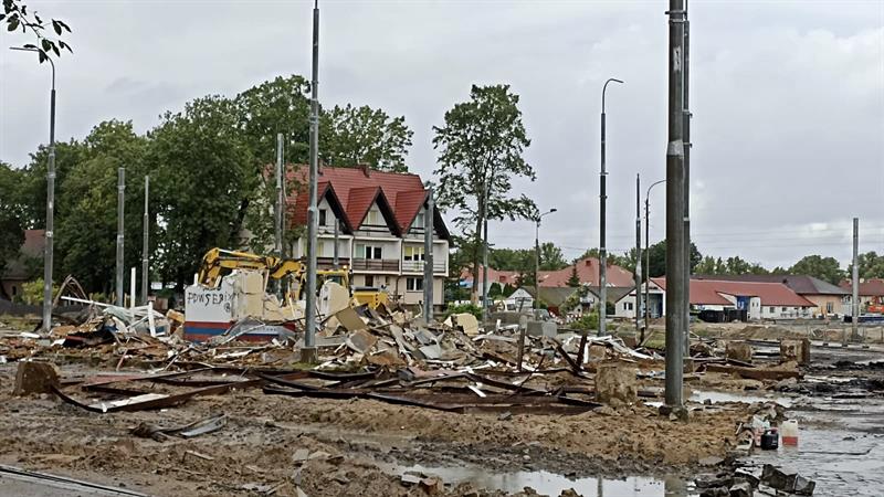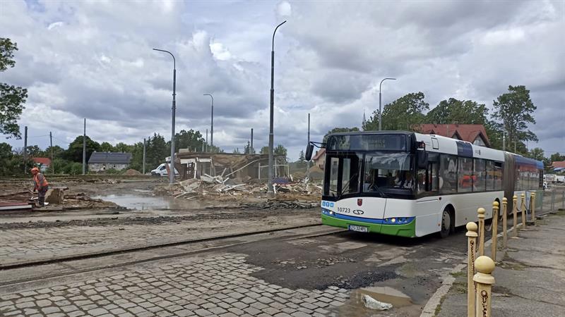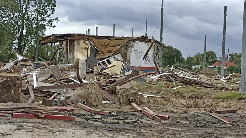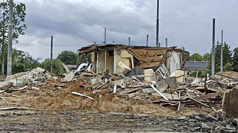 Z krajobrazu szczecińskiego Krzekowa zniknął budynek, w którym przez lata znajdowały się m.in. poczekalnia, kiosk, kasa biletowa i pomieszczenie socjalne dla kierowców i motorniczych. Zdjęcia: Tomasz Tokarzewski