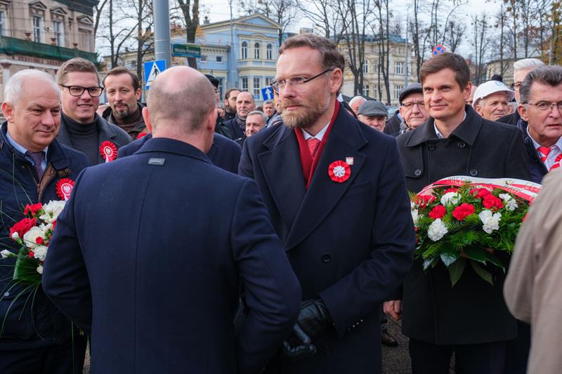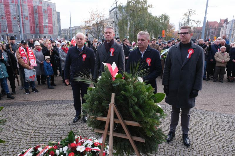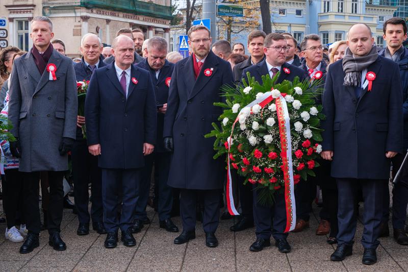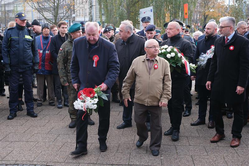Pod pomnikiem Marszałka Józefa Piłsudskiego szczecinianie składali kwiaty. Nie zabrakło także prezydenta miasta, wojewody oraz szczecińskich radnych i posłów.