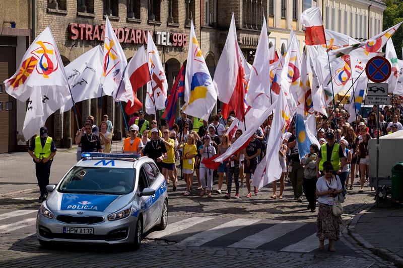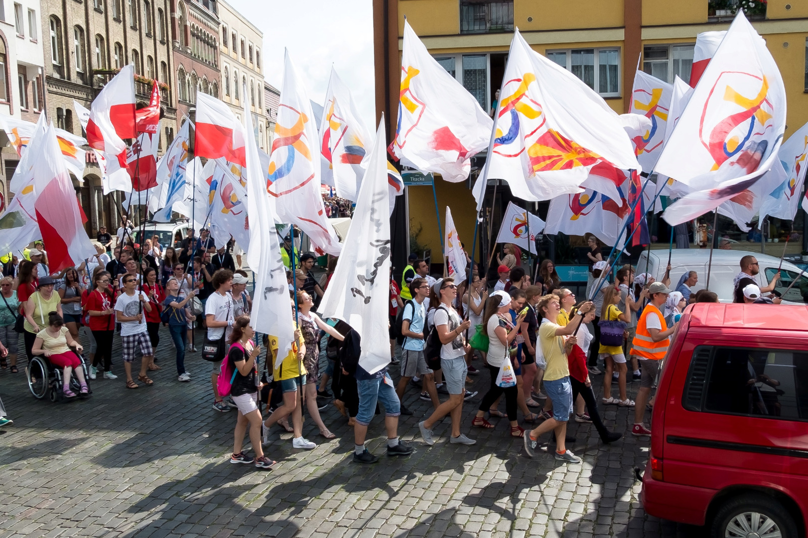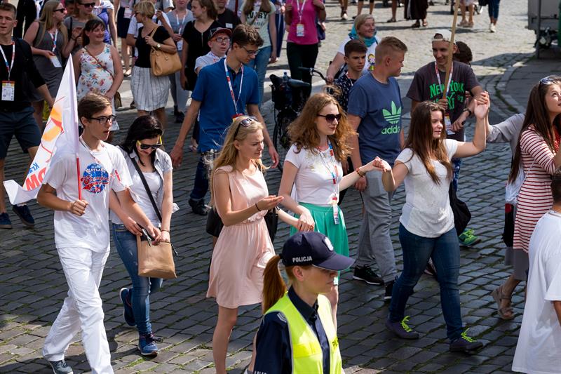 W sobotę (23 lipca) z pl. Orła Białego ruszyli w Marszu Narodów pielgrzymi, którzy zatrzymali się w Szczecinie w drodze do Krakowa na Światowe Dni Młodzieży. Podchód ruszył pod pomnik Jana Pawła II na Jasnych Błoniach. Przed wymarszem zaprezentowali się wszyscy pątnicy z Kanady, Meksyku, Brazylii, Irlandii, Niemiec, Francji, Izraela. Najliczniejsi byli Francuzi.