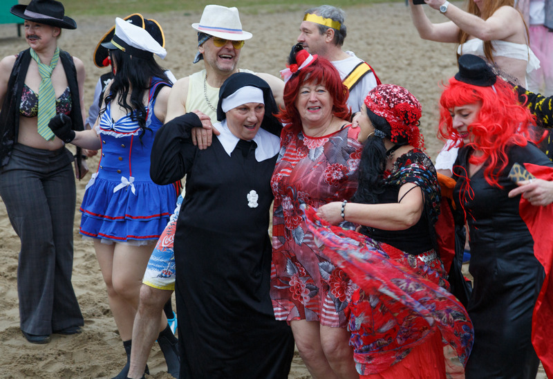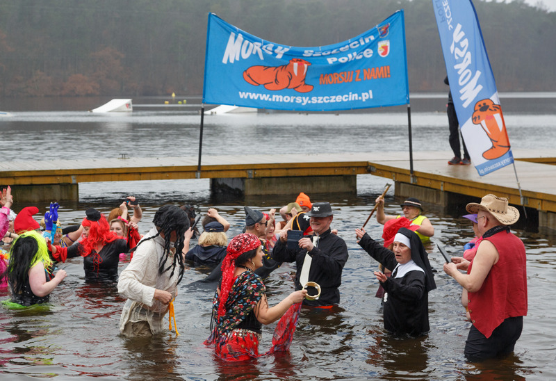 Członkowie Szczecińsko-Polickiego Klubu "Morsy" spotkali się w sobotę (29 stycznia) na kąpielisku Głębokie w Szczecinie na Morsową Karnawałową Kąpiel Przebierańców.