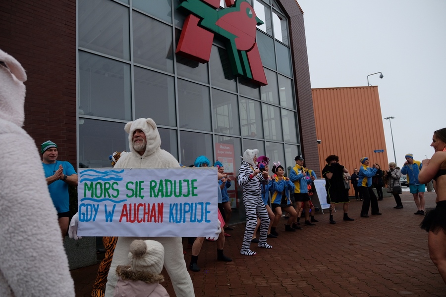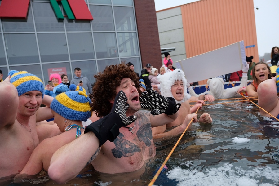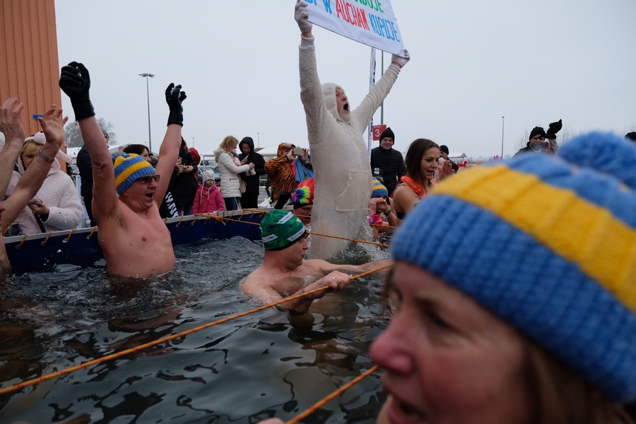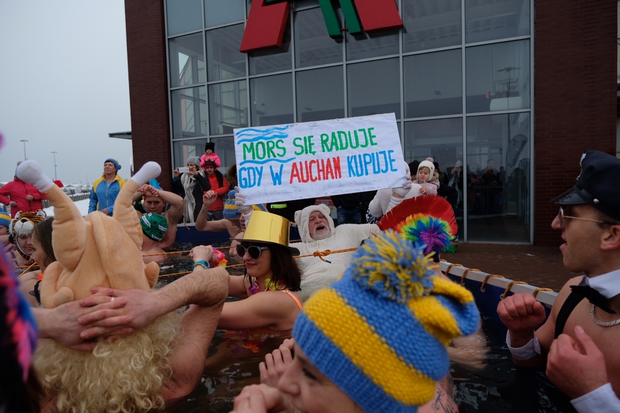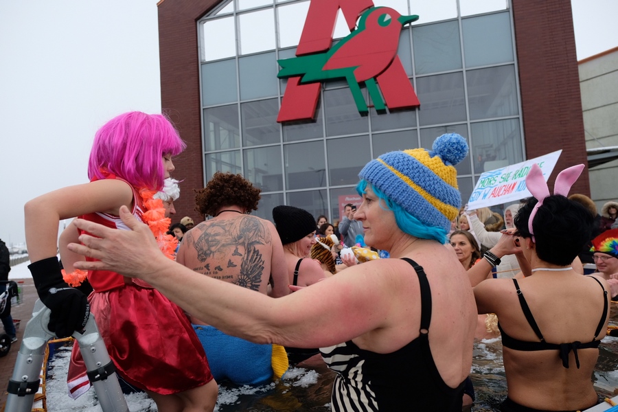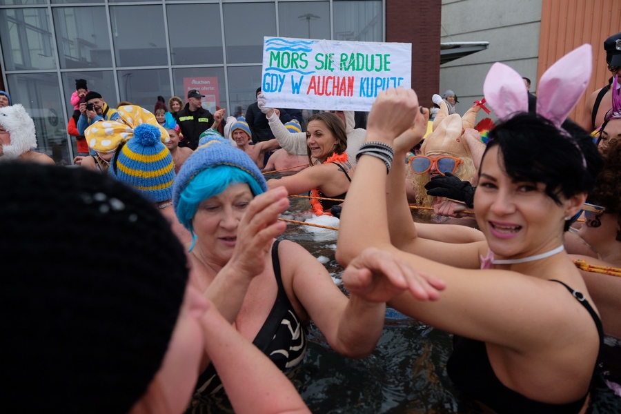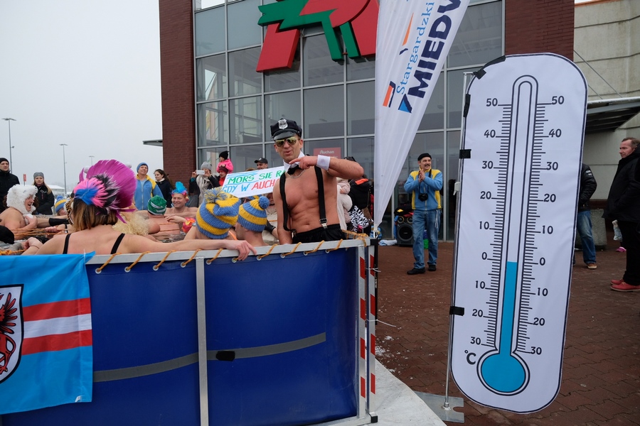 Kilkadziesiąt morsów spotkało się w niedzielę (4 lutego) przed Centrum Handlowym Auchan, aby wziąć udział we wspólnej kąpieli w basenie z lodowatą wodą. Jak widać po zdjęciach zabawa była znakomita.