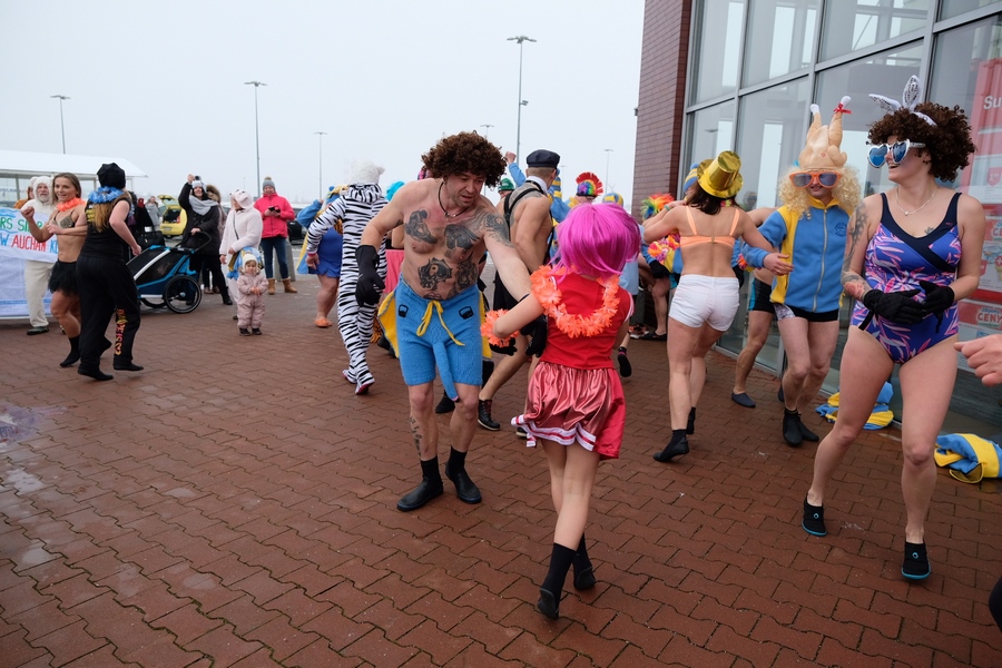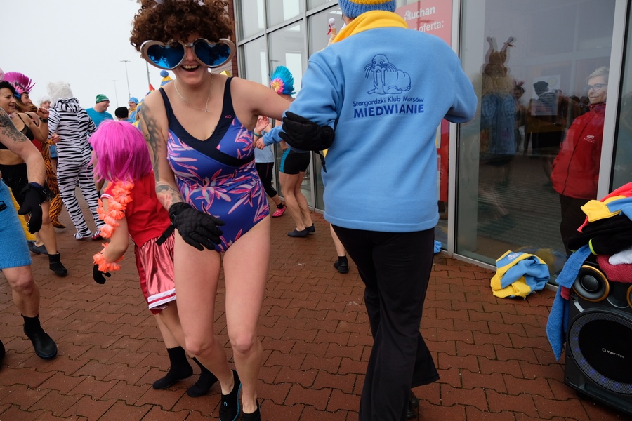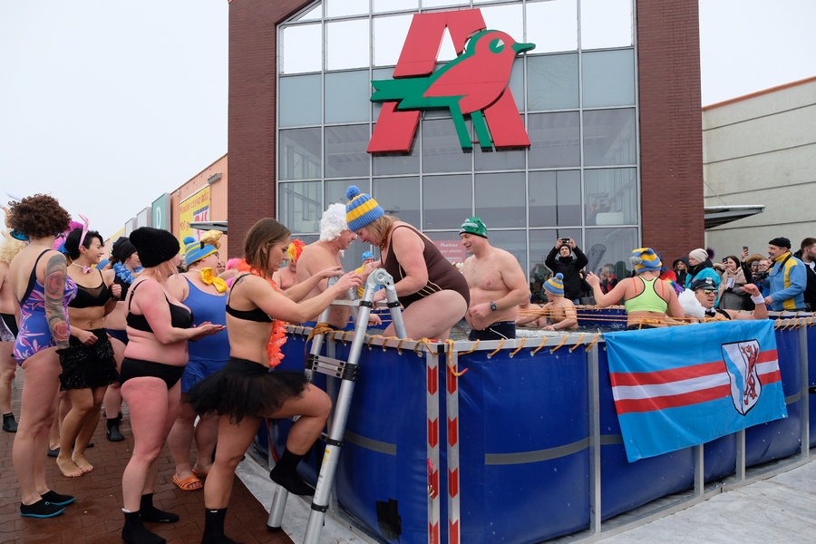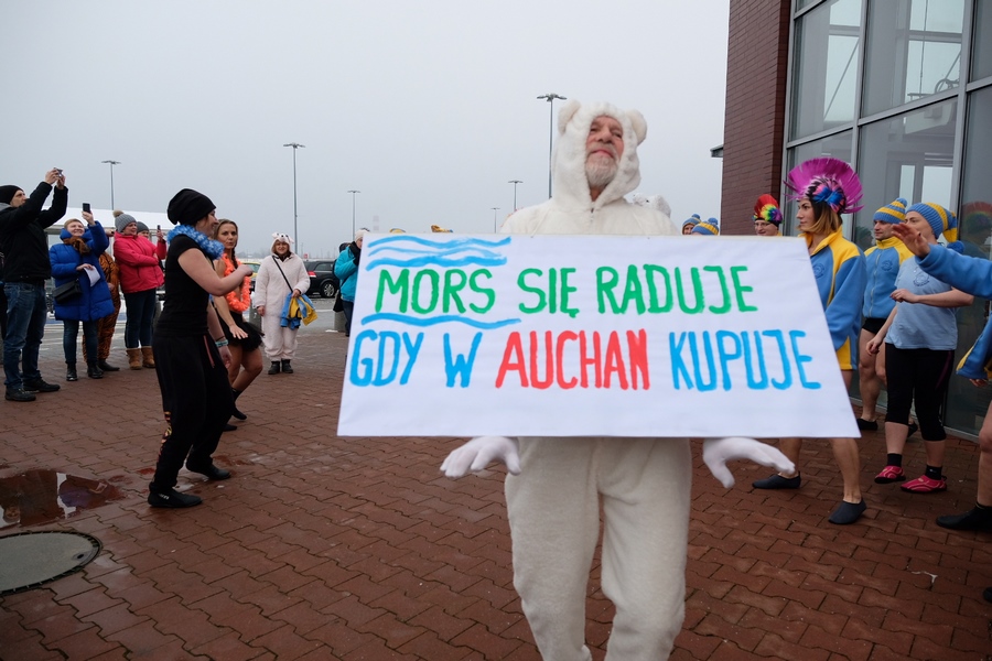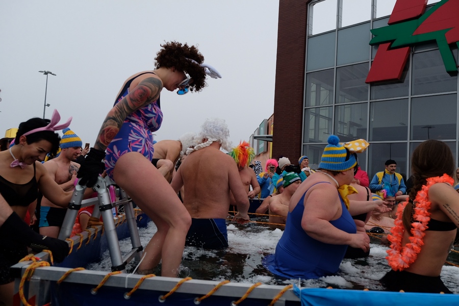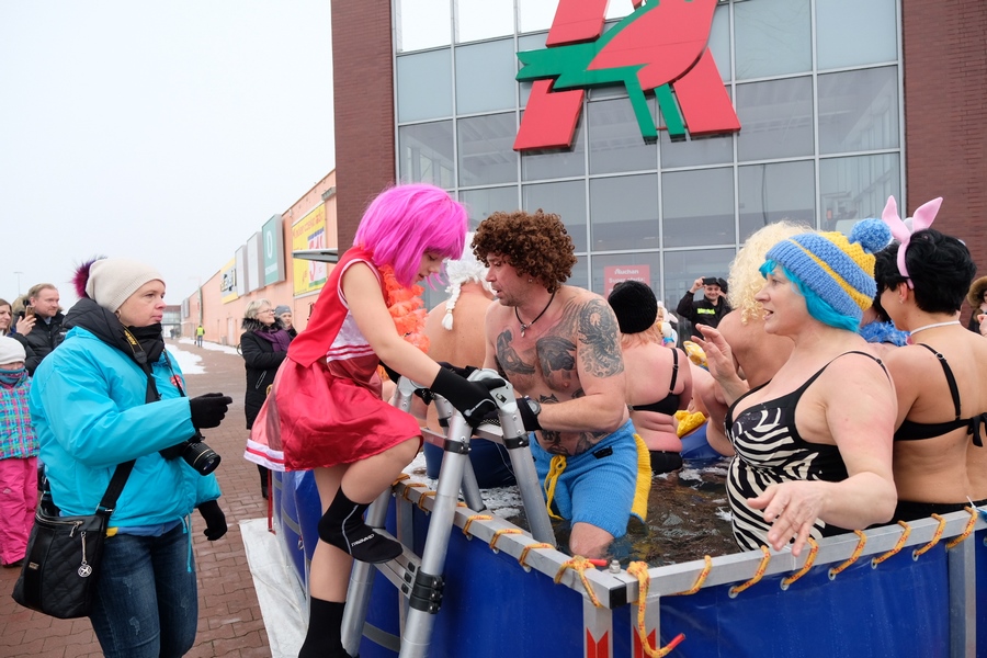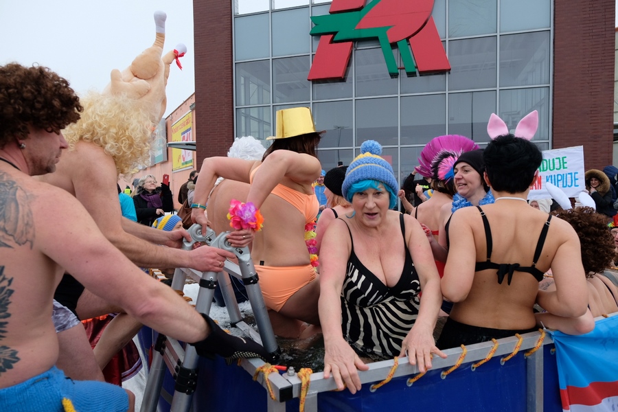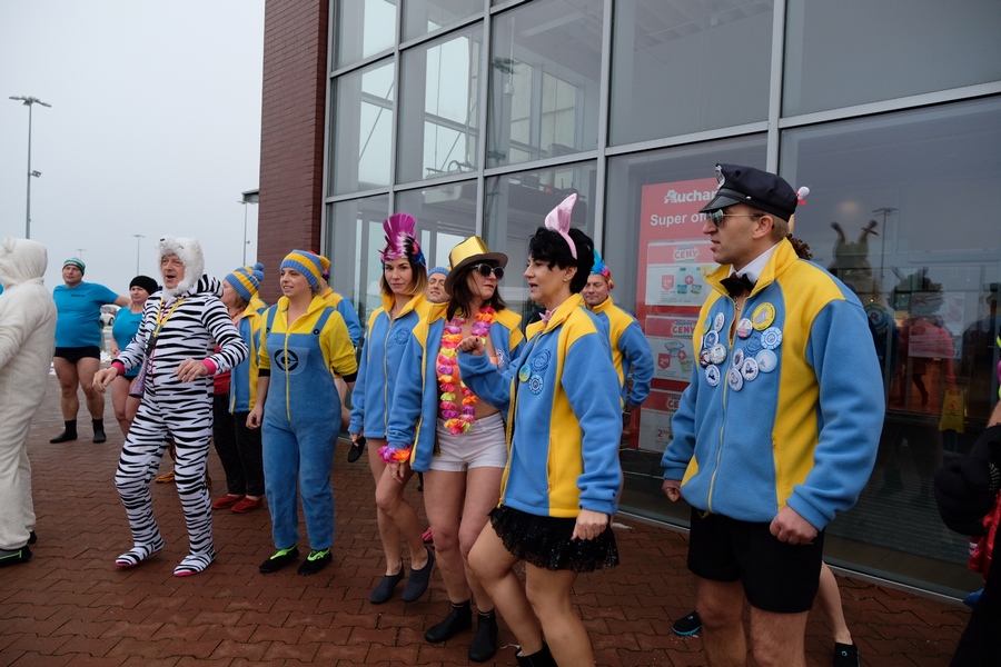 Kilkadziesiąt morsów spotkało się w niedzielę (4 lutego) przed Centrum Handlowym Auchan, aby wziąć udział we wspólnej kąpieli w basenie z lodowatą wodą. Jak widać po zdjęciach zabawa była znakomita.
