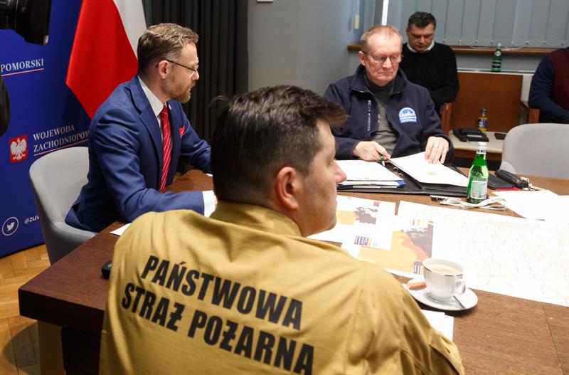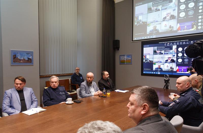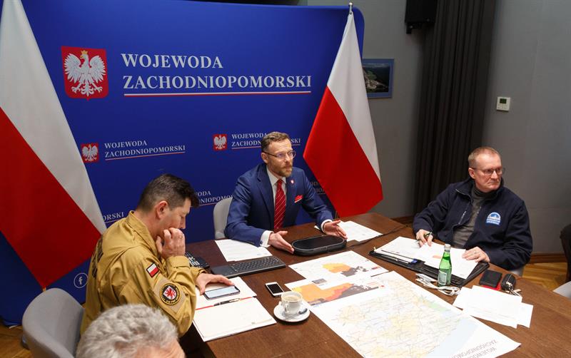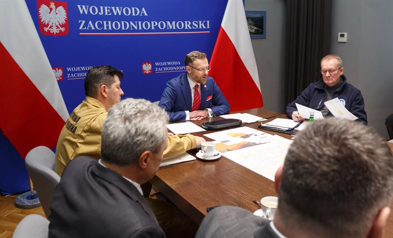 Posiedzenie Wojewódzkiego Zespołu Zarządzania Kryzysowego przed nadciągającym cyklonem Ulf.