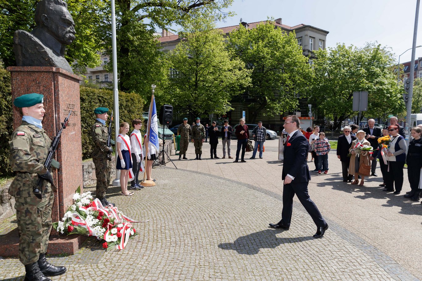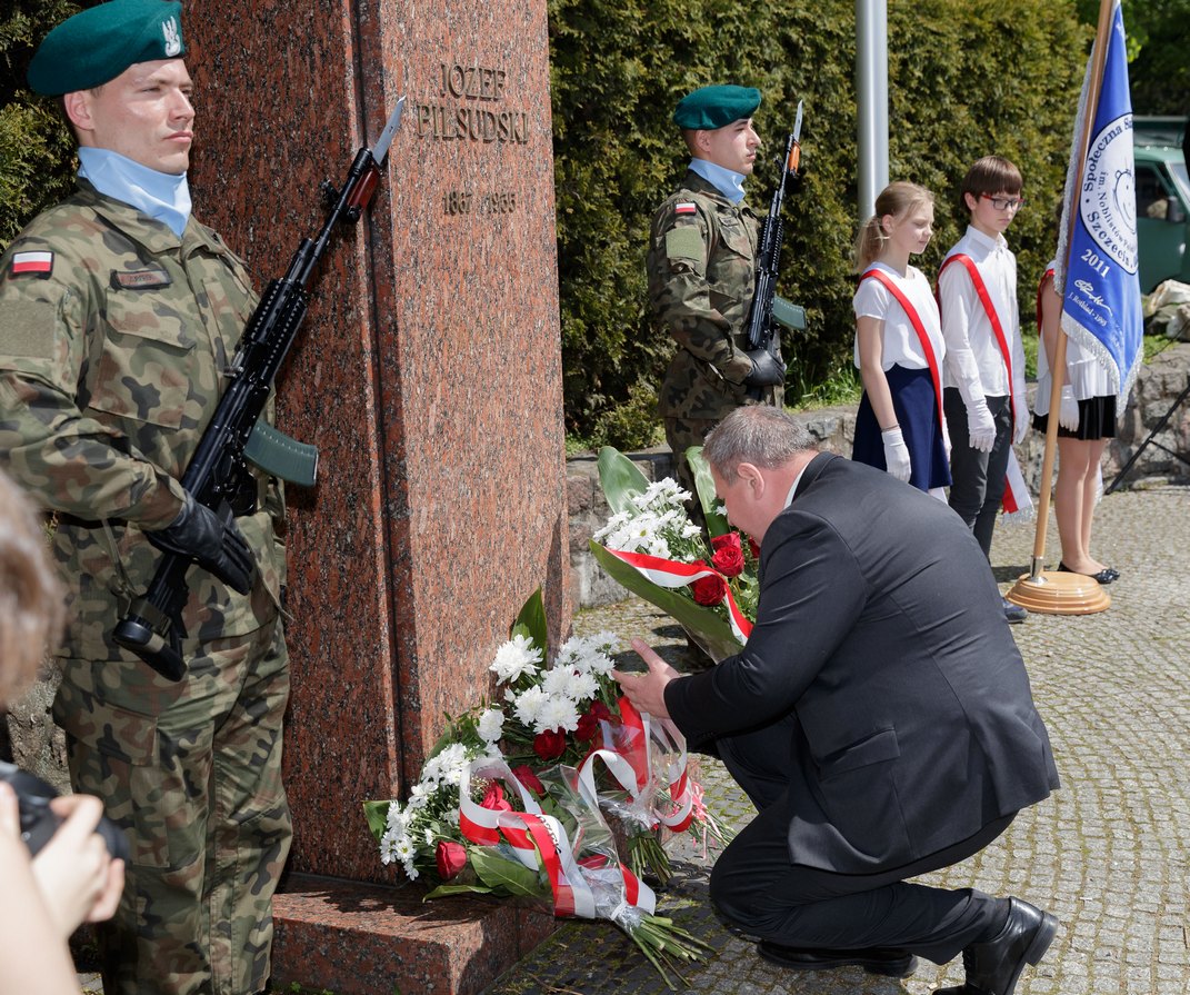 W rocznicę śmierci Marszałka Józefa Piłsudskiego przed jego popiersiem na szczecińskim pl. Szarych Szeregów uczczono jego pamięć.